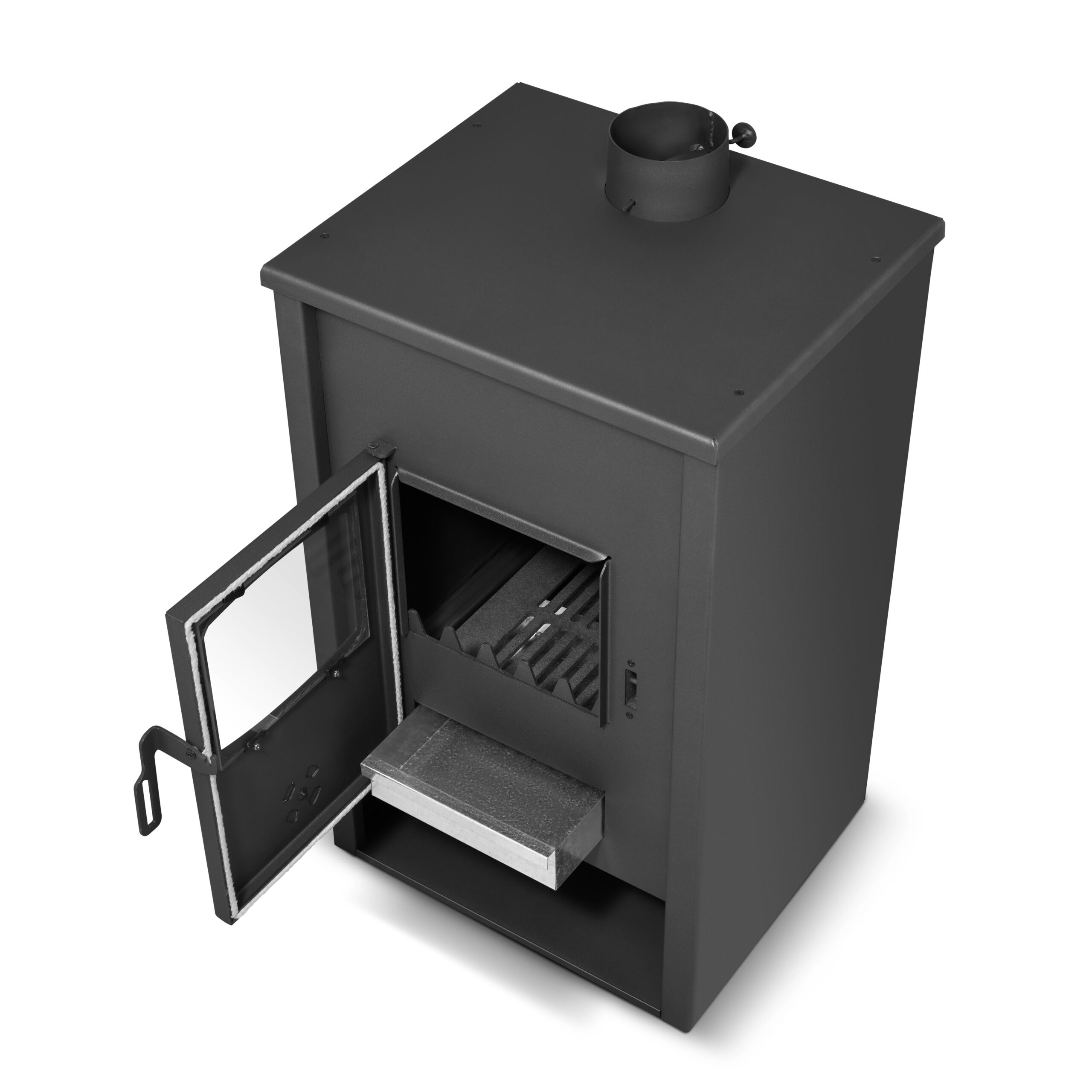 - Wyjmowany popielnik umożliwia szybkie i bezproblemowe usuwanie popiołu po spalaniu drewna.