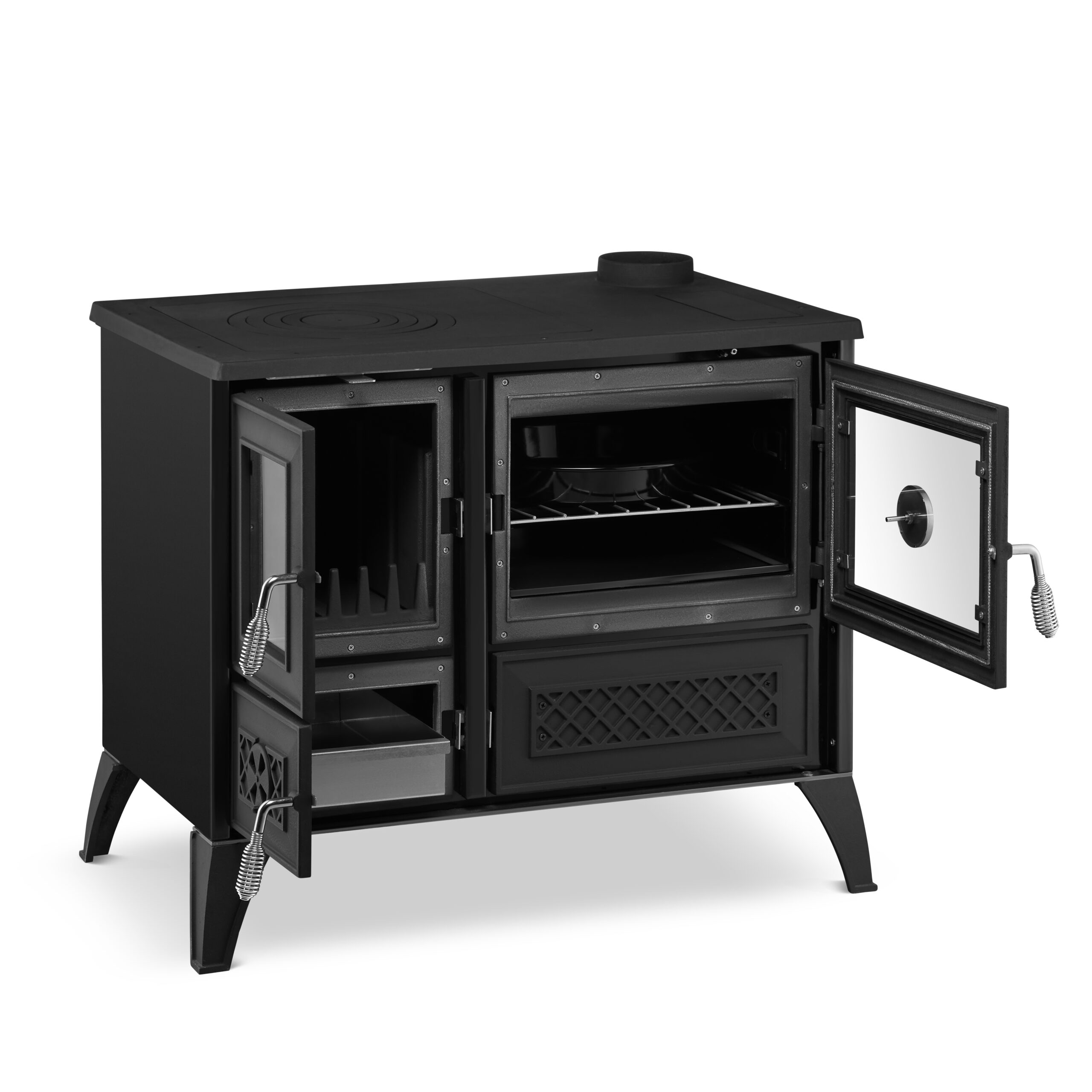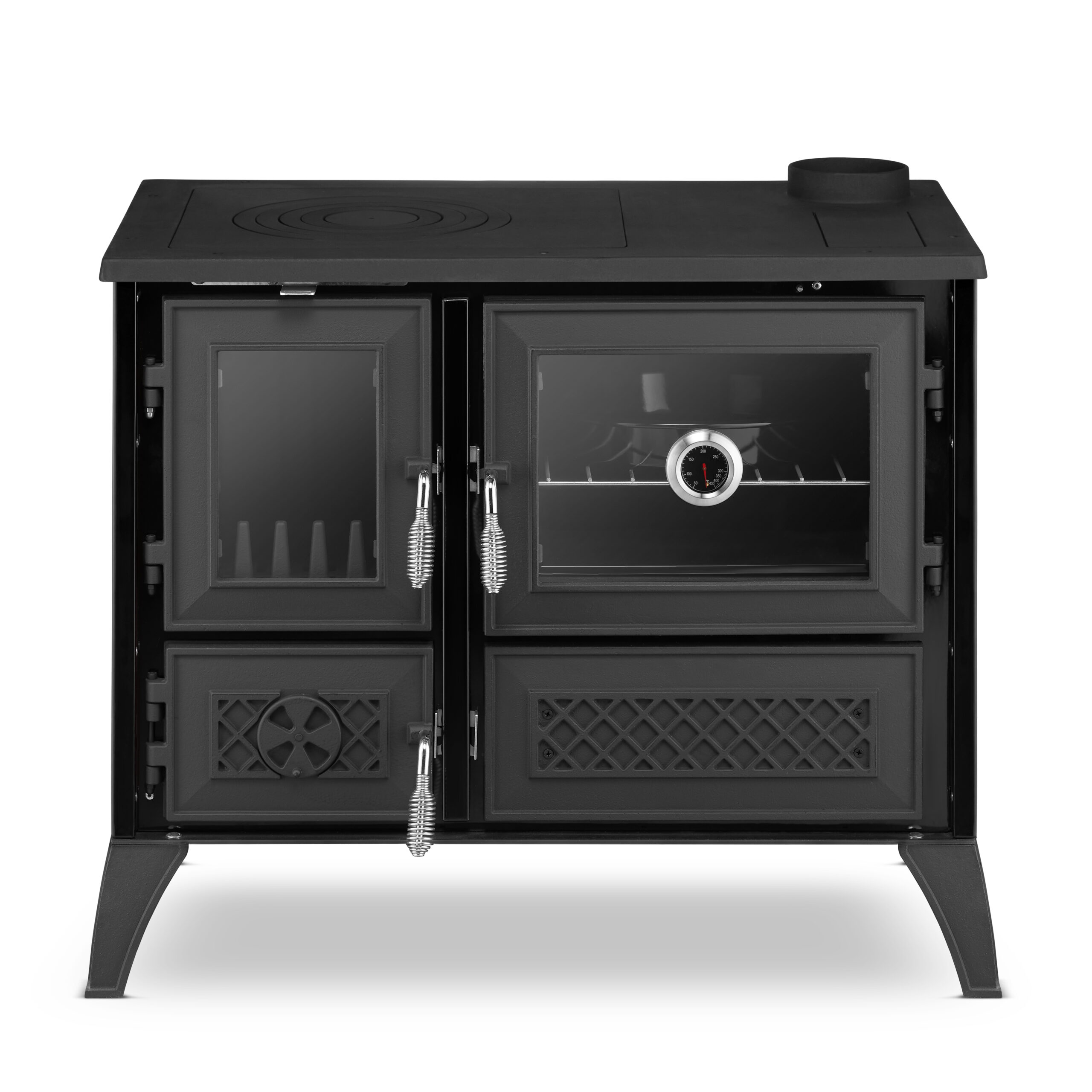 STELLA 801 spełnia nowoczesne wymagania środowiskowe – posiada oznaczenie CE i zgodność z dyrektywą Ecodesign 2022. Oznacza to, że emituje znacznie mniej szkodliwych substancji niż starsze modele, a przy tym zużywa mniej opału. Dzięki efektywnemu dopalaniu spalin i sprawnej regulacji powietrza kuchnia pracuje wydajnie i czyściej. To idealny wybór dla osób, które chcą cieszyć się klasycznym piecem, a jednocześnie dbać o środowisko.
