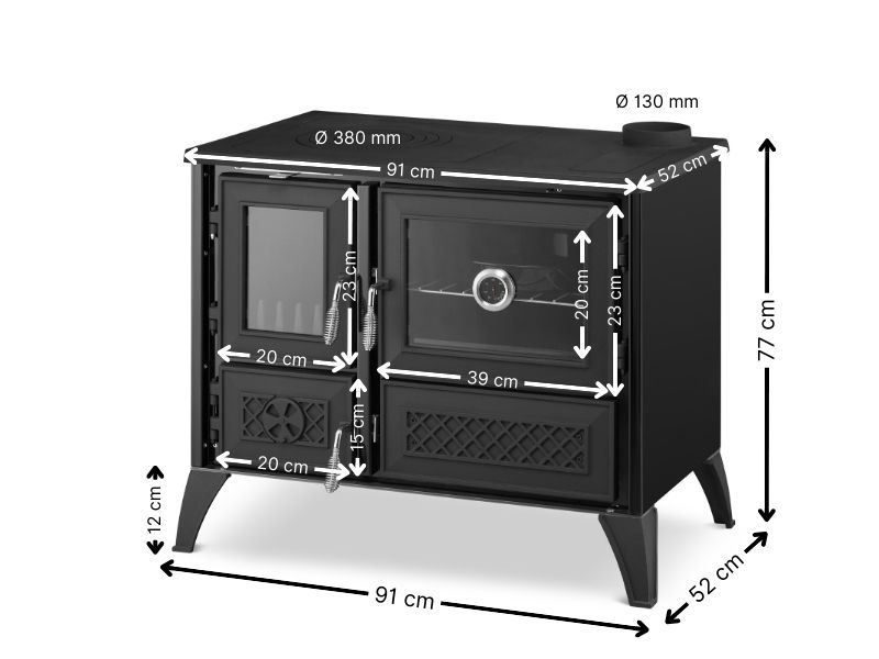 Sercem kuchni STELLA jest wytrzymała, żeliwna płyta grzewcza o imponujących wymiarach 91 × 52 cm. Żeliwo to materiał o znakomitych właściwościach akumulacyjnych – nagrzewa się powoli, ale długo utrzymuje ciepło, co przekłada się na oszczędność opału i równomierne podgrzewanie potraw. To niezastąpione rozwiązanie w kuchni, która ma służyć nie tylko jako źródło ciepła, ale też jako praktyczne urządzenie do gotowania na co dzień.