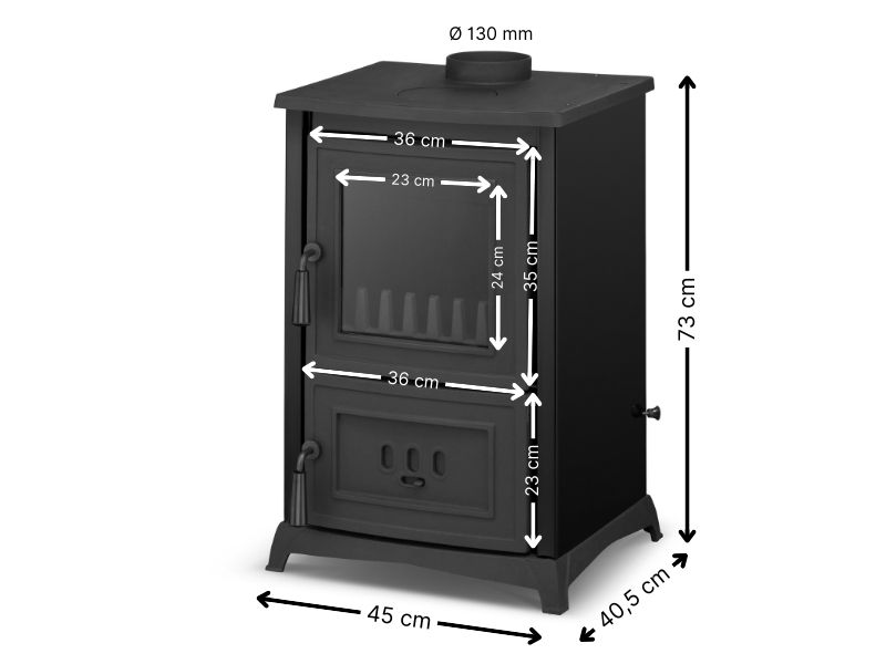 - drzwiczki popielnika: szerokość – 36 cm x wysokość – 23 cm
