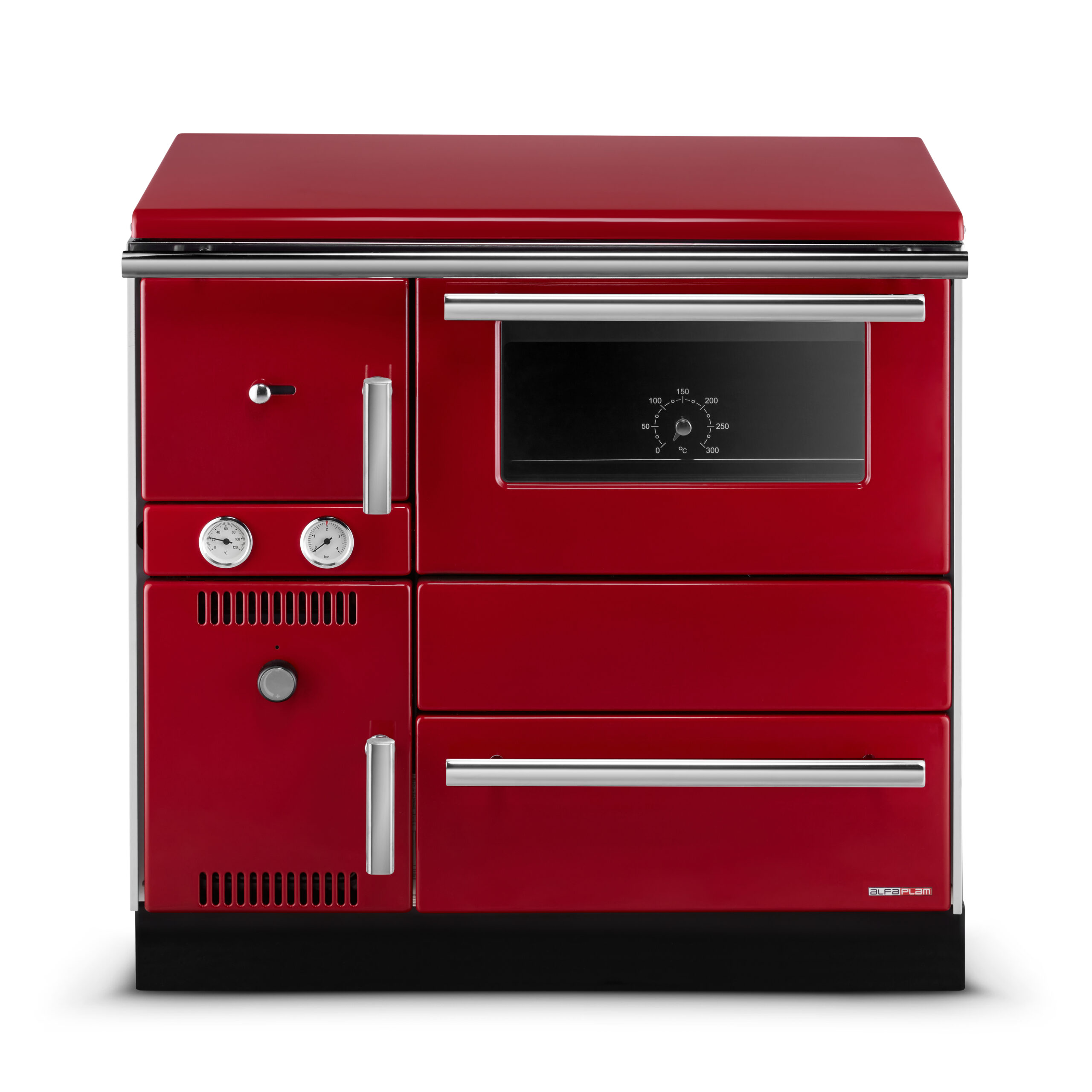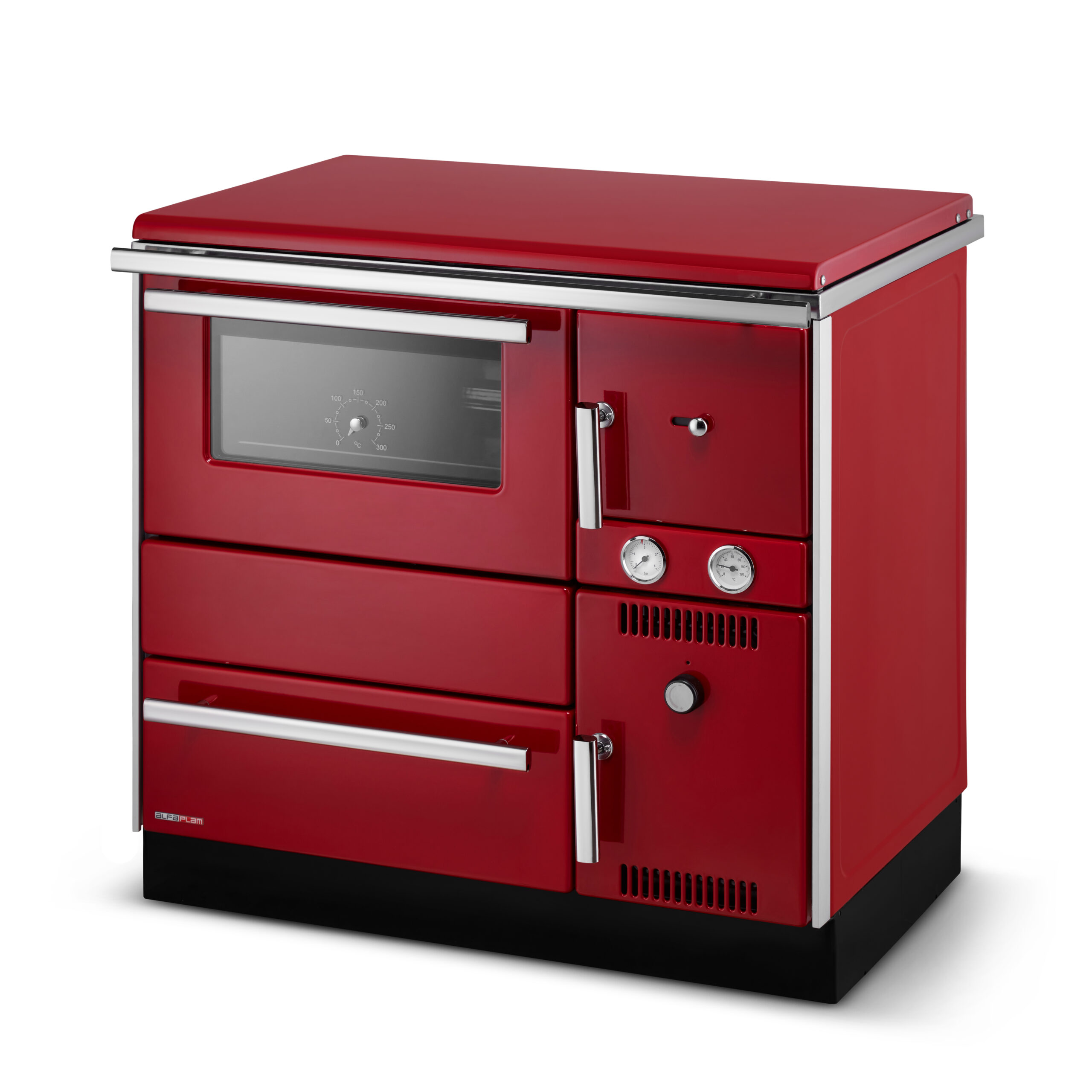 ALFA TERM 20 to nie tylko urządzenie grzewcze – to prawdziwa ozdoba wnętrza. Klasyczna forma została tu wzbogacona o nowoczesne akcenty, jak eleganckie, chromowane klamki antyoparzeniowe. Kuchnia dostępna jest w trzech wyjątkowych kolorach – klasycznej czerni, eleganckiej bieli i energetycznej czerwieni – wszystkie wykończone specjalną metodą emaliowania, która nadaje im niezwykłą trwałość i głębię koloru. Szczotkowana stal płyty grzewczej dodaje całości industrialnego charakteru. To kuchnia, która doskonale wpisuje się zarówno w rustykalne, jak i nowoczesne aranżacje.