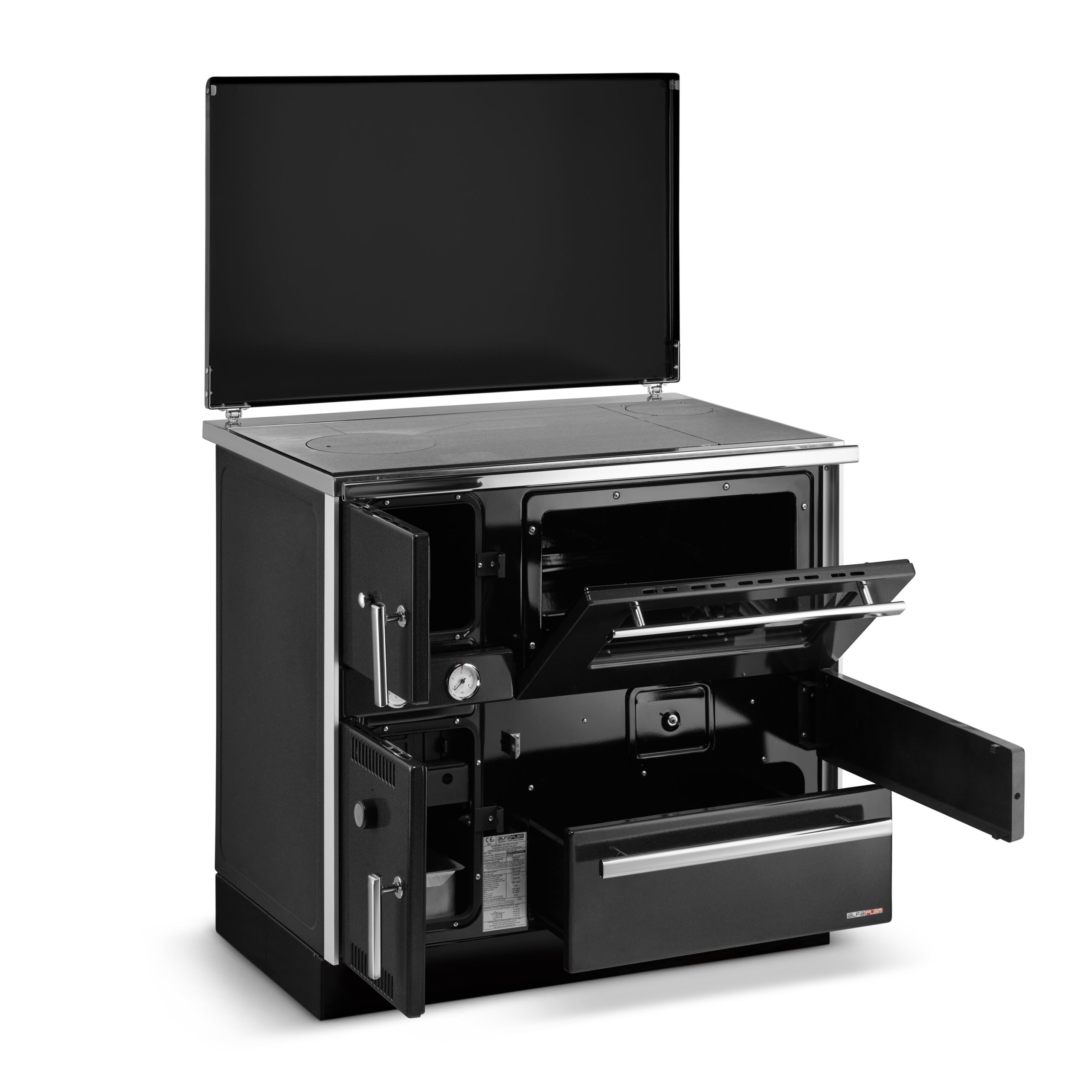 Poznaj ALFA TERM 20 – wielofunkcyjną kuchnię węglową, która łączy w sobie aż cztery urządzenia: kominek, kocioł centralnego ogrzewania, płytę kuchenną i piekarnik. To solidne i stylowe rozwiązanie dla osób ceniących niezależność, domowe ciepło i kuchnię z charakterem. Wyróżnia ją niezwykle trwała stalowa konstrukcja, imponująca wydajność energetyczna oraz unikalny design łączący klasykę z nowoczesnością. ALFA TERM 20 to nie tylko serce kuchni – to serce całego domu.