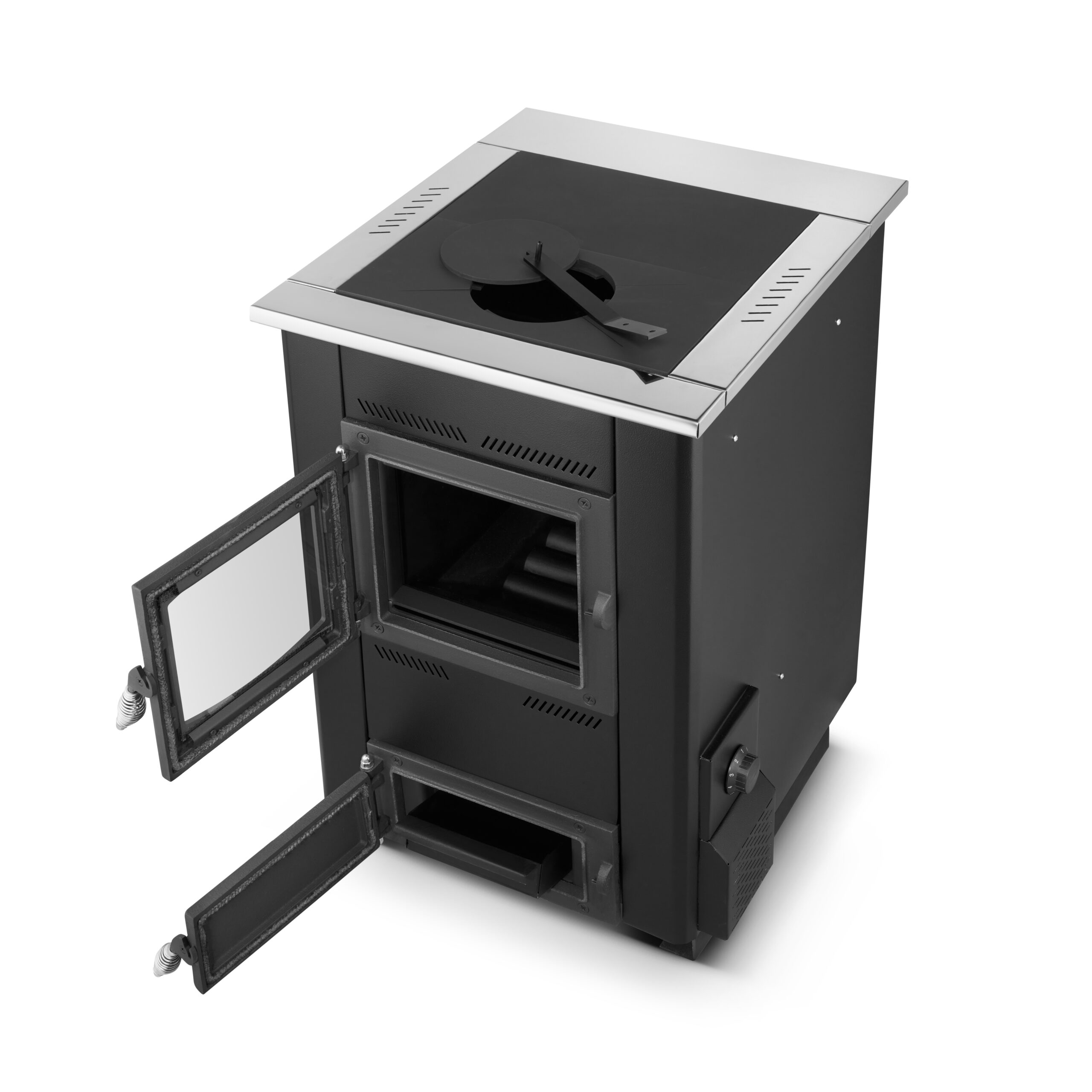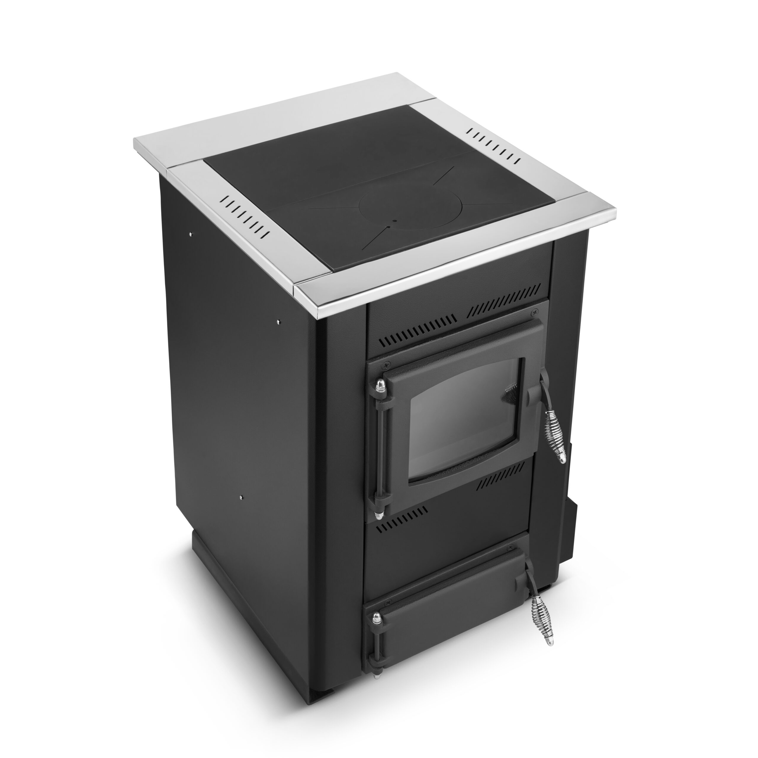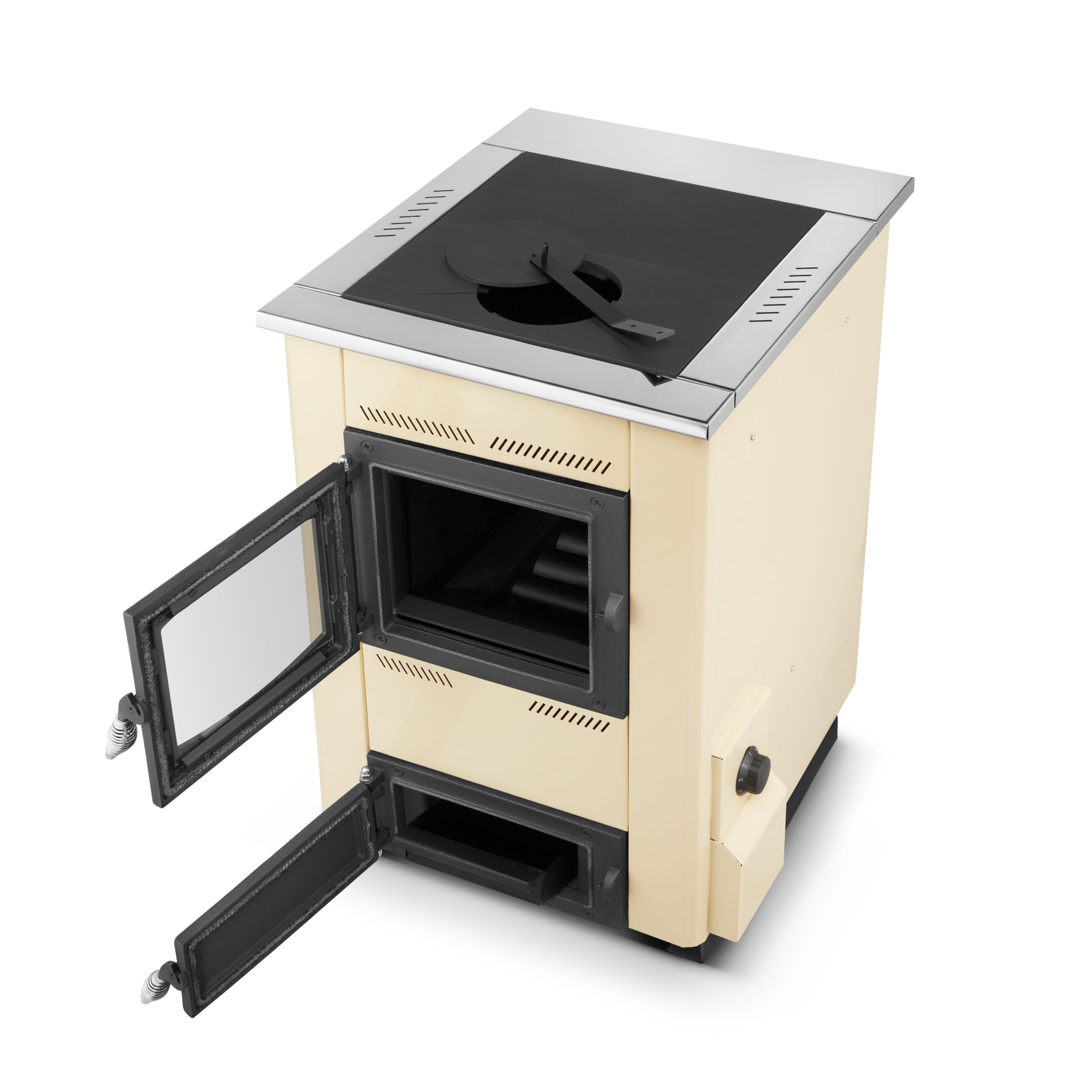 - Wielofunkcyjność – kuchnia węglowa służy zarówno do gotowania, jak i ogrzewania pomieszczenia. Ten model dodatkowo zaopatrzony jest w płaszcz wodny, więc to kolejna świetna funkcja: urządzenie 3 w 1!