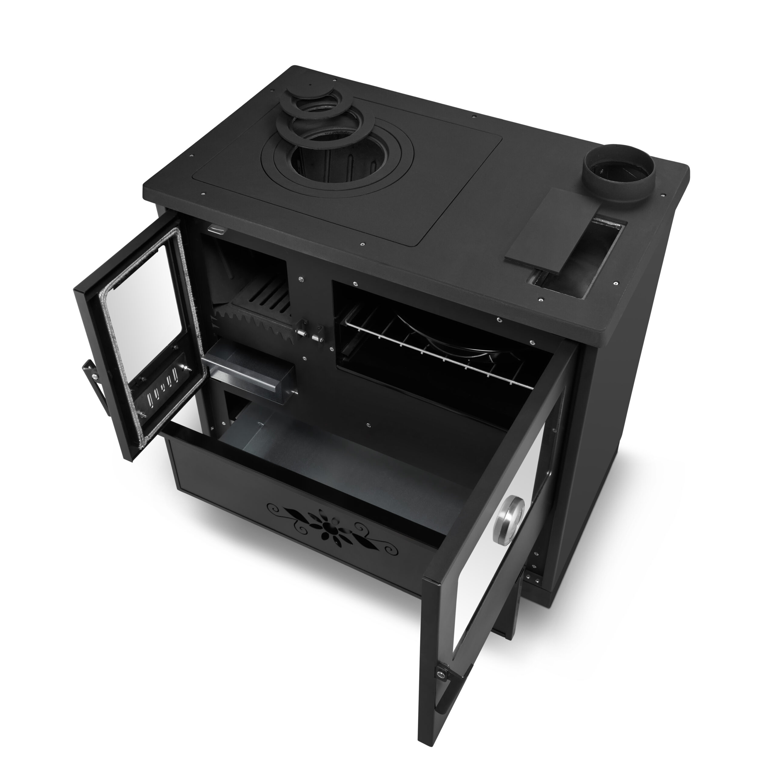 - Wyjmowany popielnik – To praktyczne rozwiązanie umożliwia szybkie i łatwe usuwanie popiołu, co znacząco ułatwia codzienne użytkowanie kuchni. Dzięki wyjmowanemu popielnikowi utrzymanie czystości staje się dziecinnie proste, a cały proces spalania jest bardziej higieniczny.