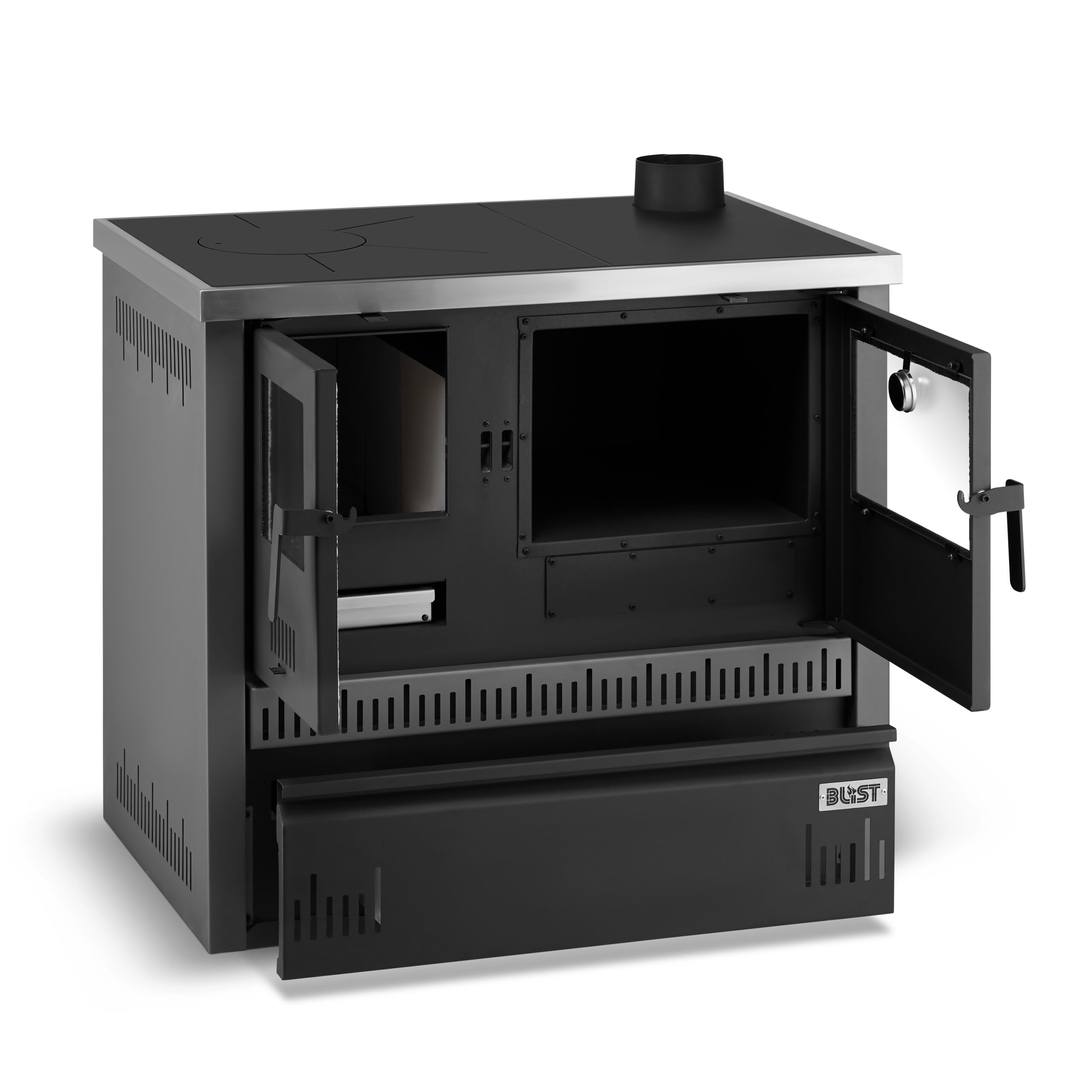 W kuchni OLIMP 12 liczy się nie tylko ciepło, ale także wygoda obsługi. Uniwersalny wylot spalin o średnicy 120 mm sprawia, że montaż jest szybki i bezproblemowy w większości domowych kominów. Przemyślana konstrukcja ułatwia dokładanie opału oraz czyszczenie popielnika. Wszystko to, by codzienne korzystanie z kuchni było przyjemnością, nie obowiązkiem. Dzięki stalowej płycie grzewczej oraz pojemnemu piekarnikowi przygotowanie rodzinnego obiadu czy pieczenie domowego chleba staje się szybkie i intuicyjne.