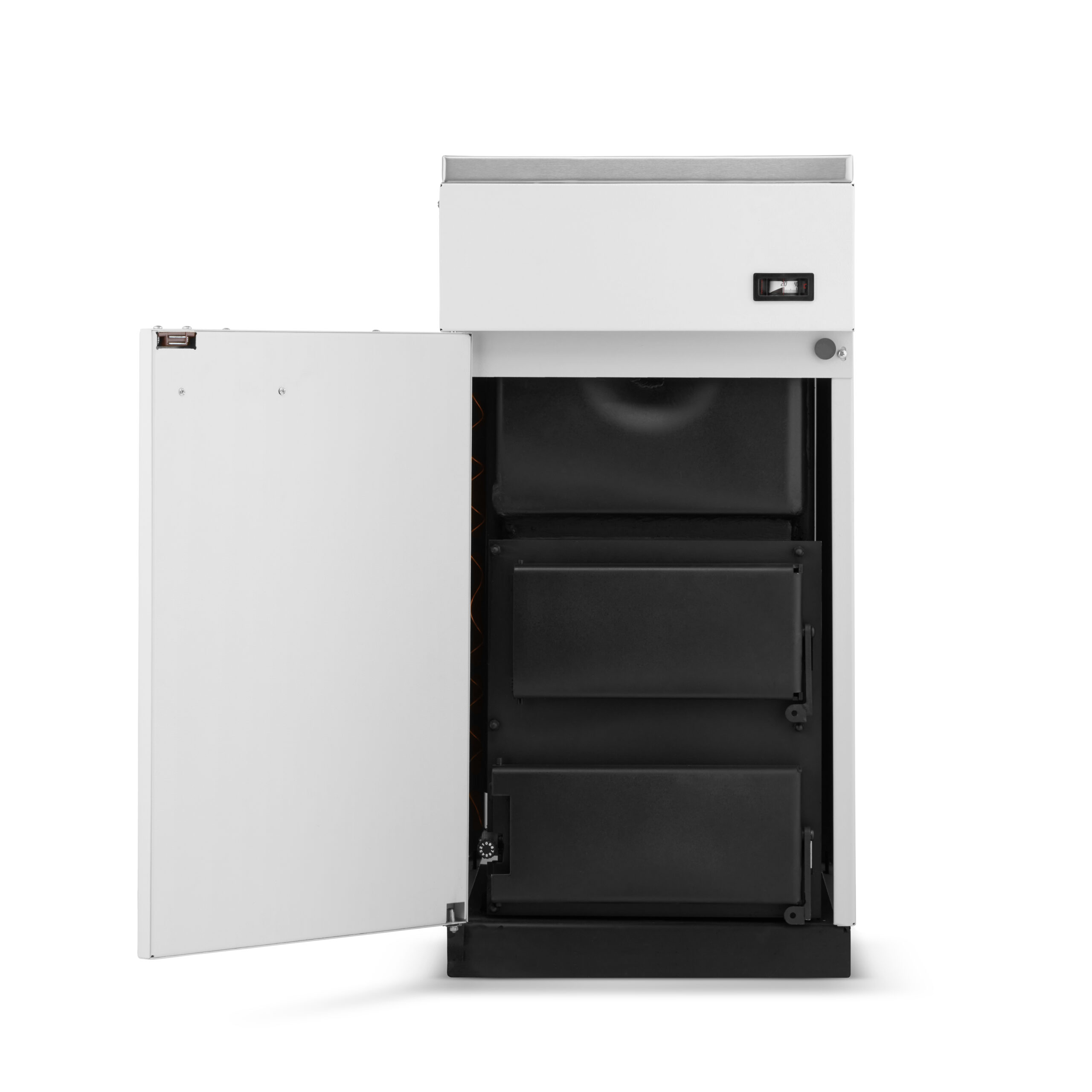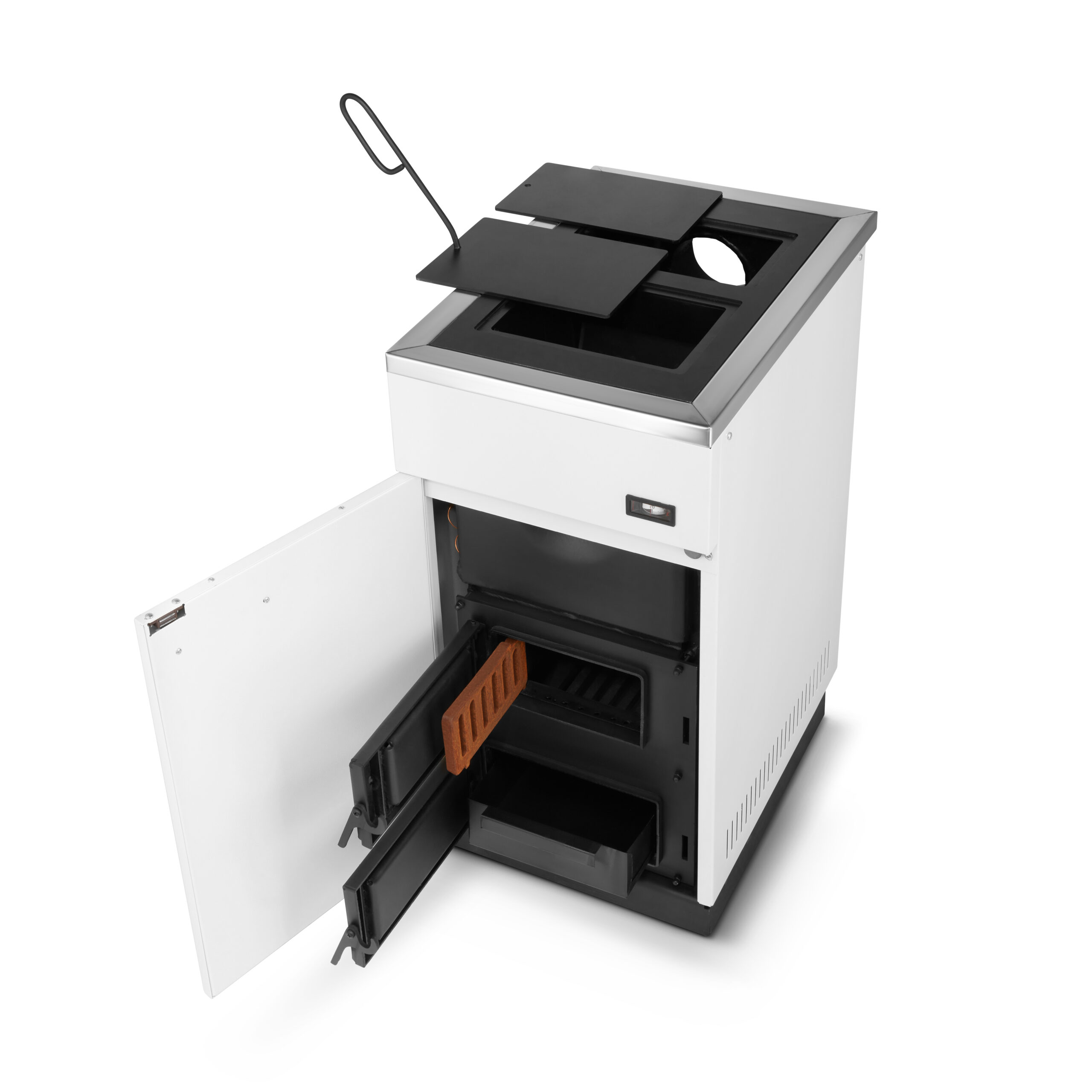 Kuchnia węglowa MEGAL nie tylko doskonale spełnia swoje funkcje grzewcze, ale również stanowi estetyczny element wyposażenia domu. Jej nowoczesna obudowa w dwóch eleganckich kolorach – białym i beżowym – doskonale wpasuje się w każdą przestrzeń. Co istotne, jej wymiary dostosowane są do standardowych mebli kuchennych. Dzięki temu kuchnia MEGAL idealnie komponuje się z resztą wyposażenia, nie zajmując przy tym zbędnej przestrzeni. Możesz zapewnić sobie ciepło i komfort, nie rezygnując przy tym z atrakcyjnego wyglądu.