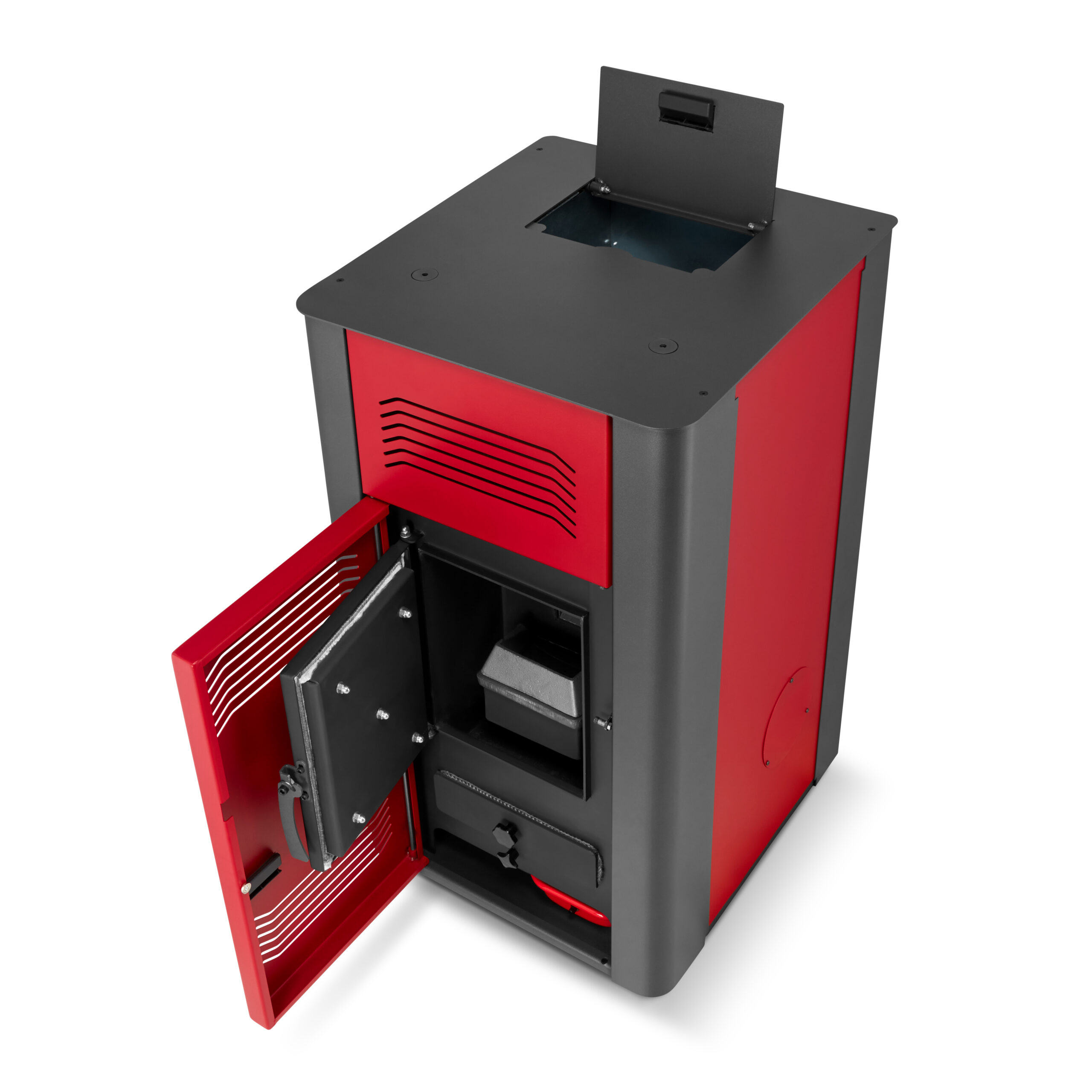 TERA 18 wyróżnia się eleganckim i nowoczesnym wyglądem, który doskonale komponuje się z każdym wnętrzem. Front w wyrazistej czerwieni w połączeniu z antracytowymi bokami prezentuje się niezwykle stylowo. Warto dodać, że farba żaroodporna ma na celu przede wszystkim ochronę zewnętrznej części pieca.