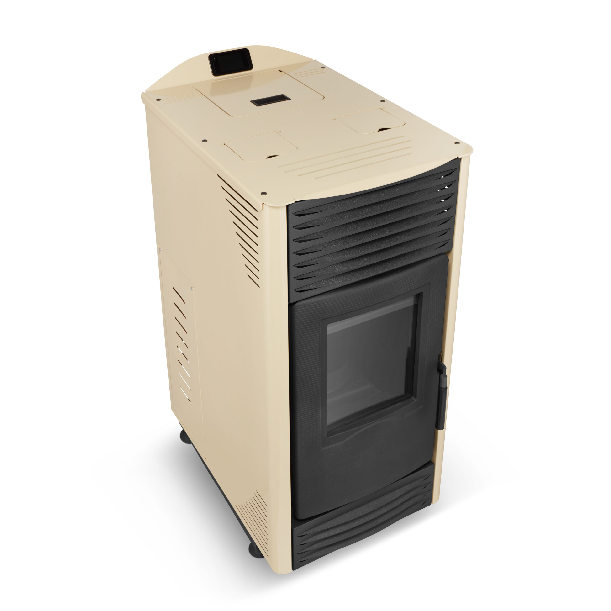 Piec osiąga efektywność na poziomie 90%, co oznacza maksymalne wykorzystanie energii zawartej w pellecie. Przy mocy minimalnej zużywa zaledwie 0,9 kg pelletu na godzinę, a przy mocy maksymalnej – 3,6 kg/h. Dzięki temu możesz łatwo dostosować intensywność pracy pieca do swoich potrzeb, optymalizując zużycie paliwa i koszty ogrzewania.