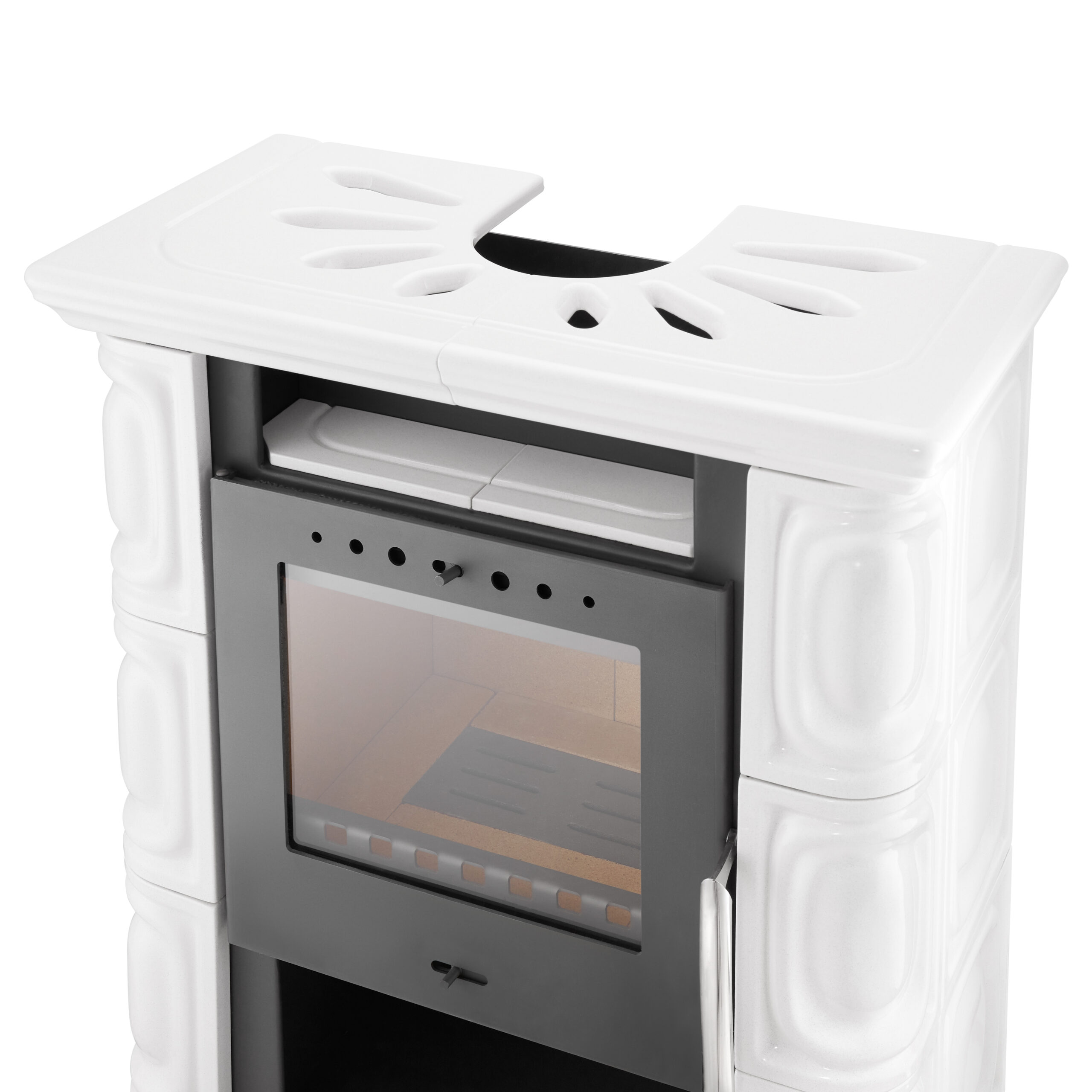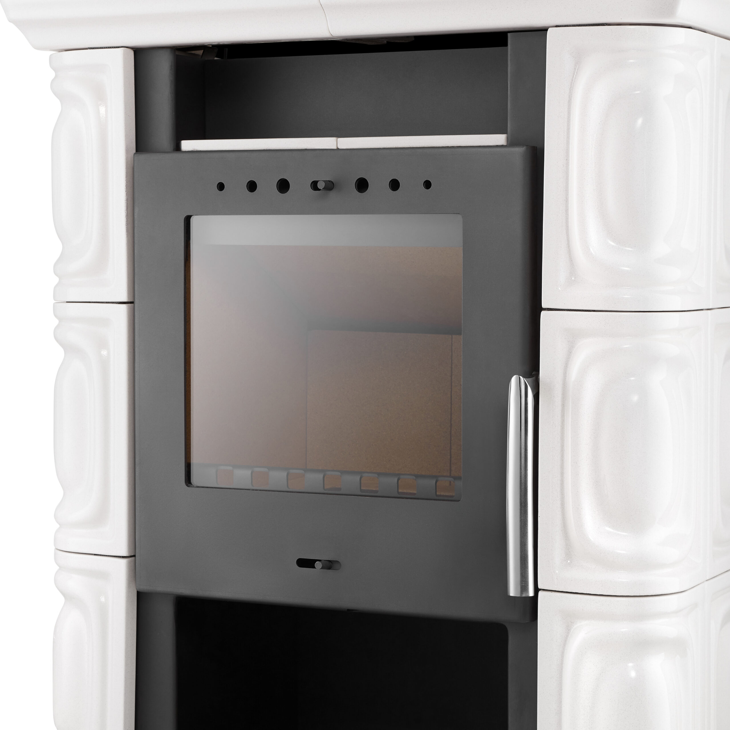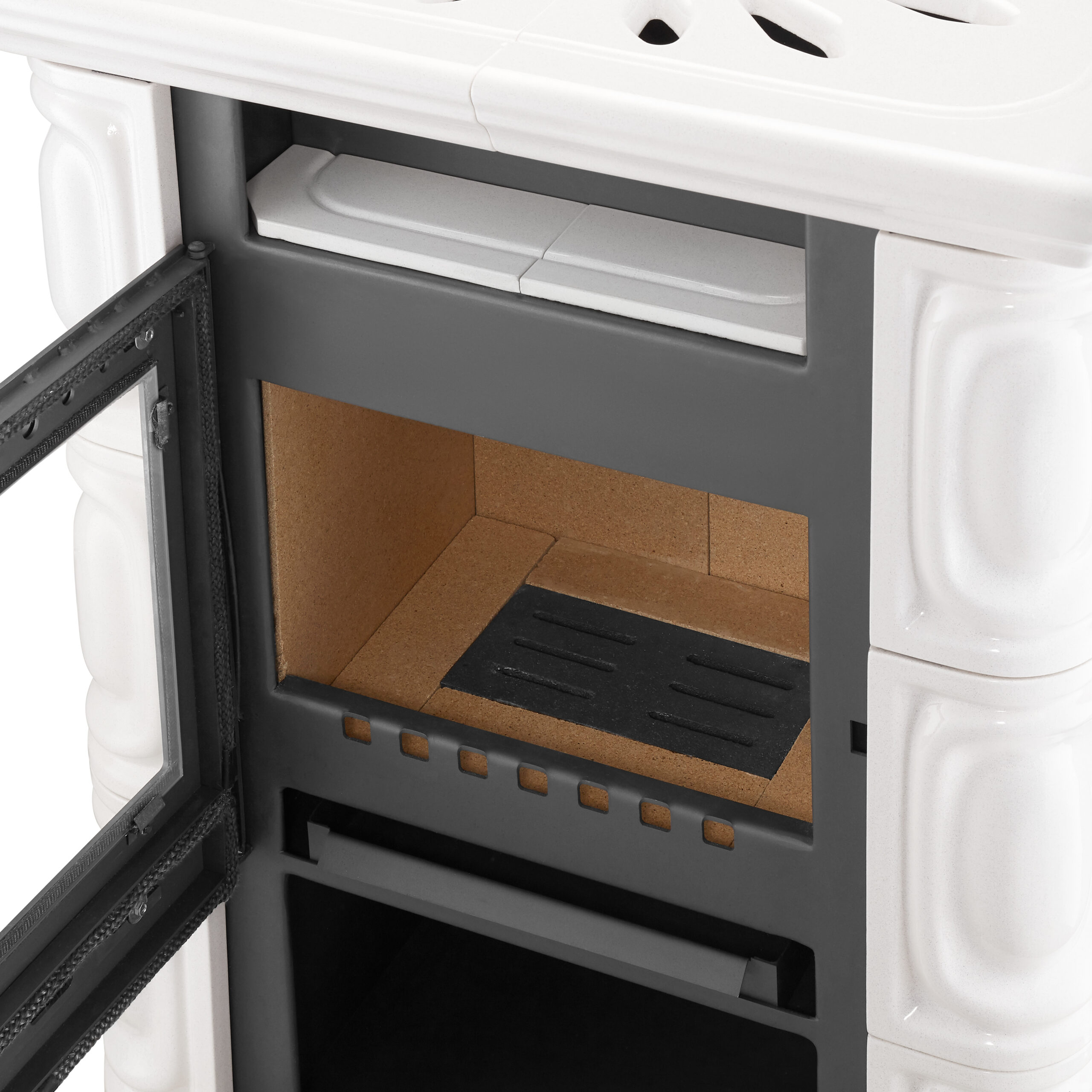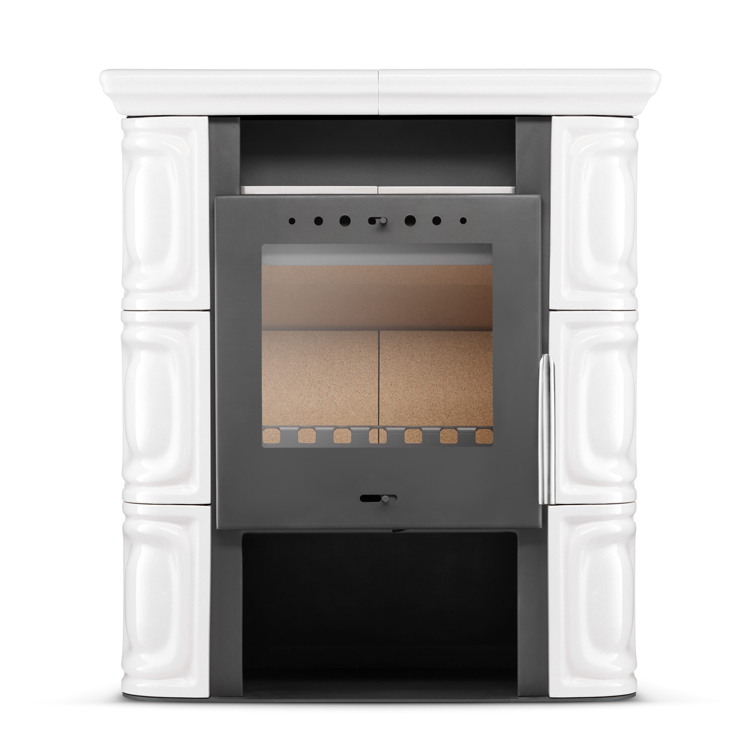 Korpus pieca ALEA wykonany jest ze stali malowanej farbą żaroodporną, co gwarantuje trwałość i odporność na wysokie temperatury. Całość wykończona jest klasycznymi kaflami ceramicznymi z dodatkiem szamotu. Dzięki doskonałej zdolności akumulacji ciepła sprawiają, że piec działa efektywnie i długo oddaje ciepło.