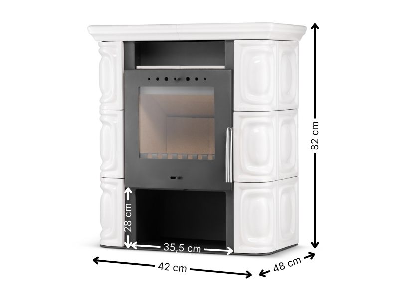• wymiary pieca: wysokość – 82 cm x szerokość – 42 cm x głębokość – 48 cm