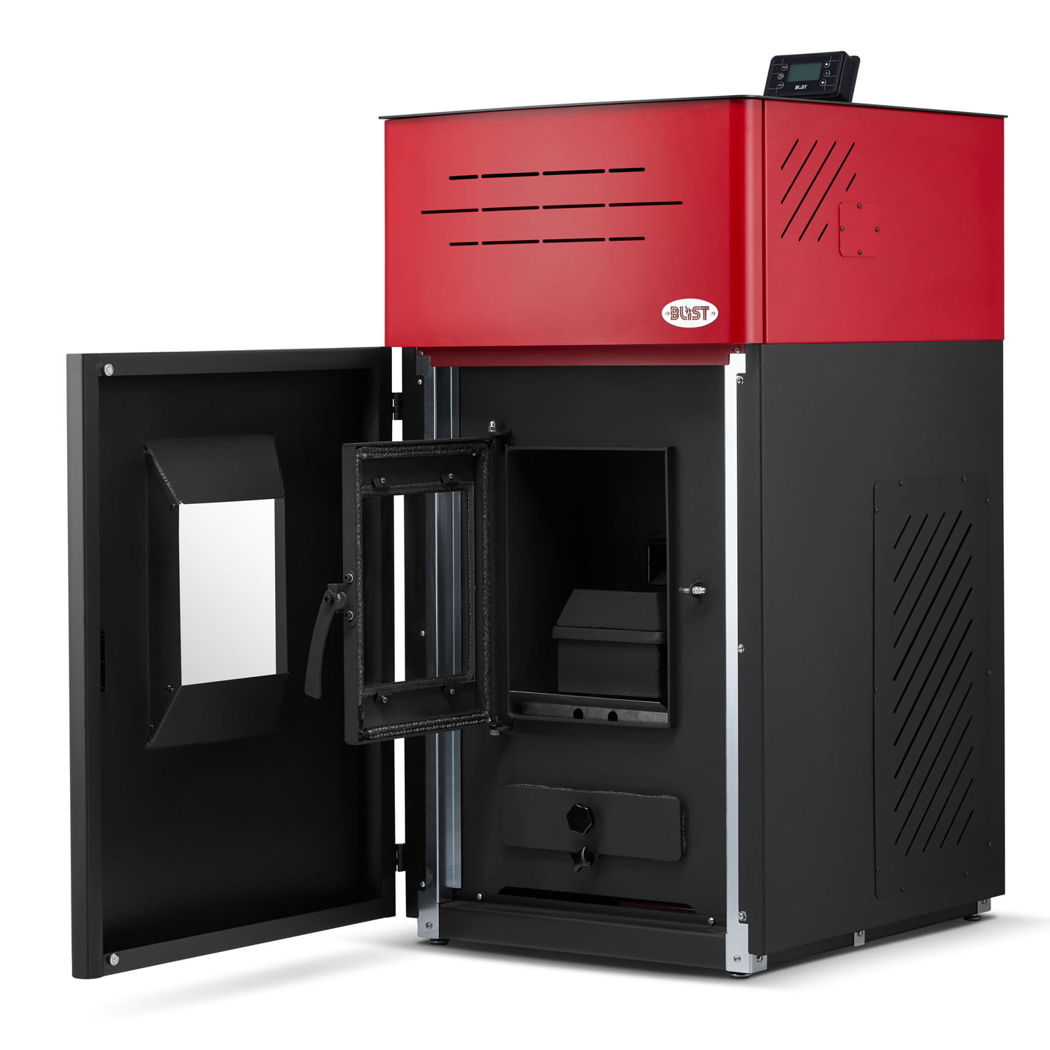 Piec SAHARA 21 BLIST ma stalową obudowę w kolorze czerwonym lub cappuccino, odporną na wysokie temperatury. Duża szyba ceramiczna z systemem „czysta szyba” umożliwia komfortowe obserwowanie płomienia, a jednocześnie łatwo utrzymać ją w czystości. Urządzenie wyposażono w programator dzienny i tygodniowy, wyświetlacz LCD, regulację szybkości spalania oraz opcjonalny moduł Wi‑Fi do zdalnego sterowania. Dzięki temu możesz ustawić piec tak, aby zawsze działał zgodnie z Twoimi potrzebami, bez konieczności ciągłego nadzorowania.