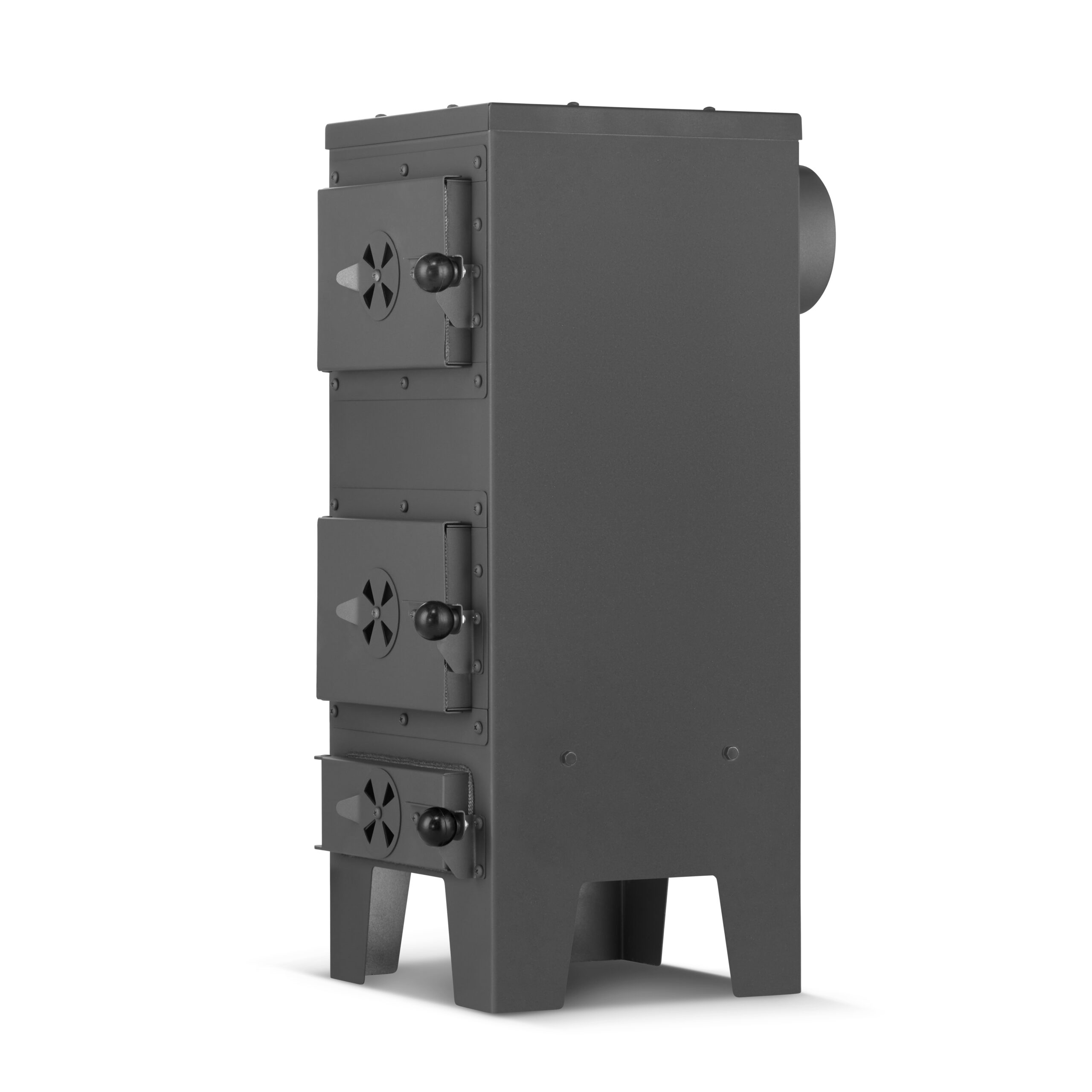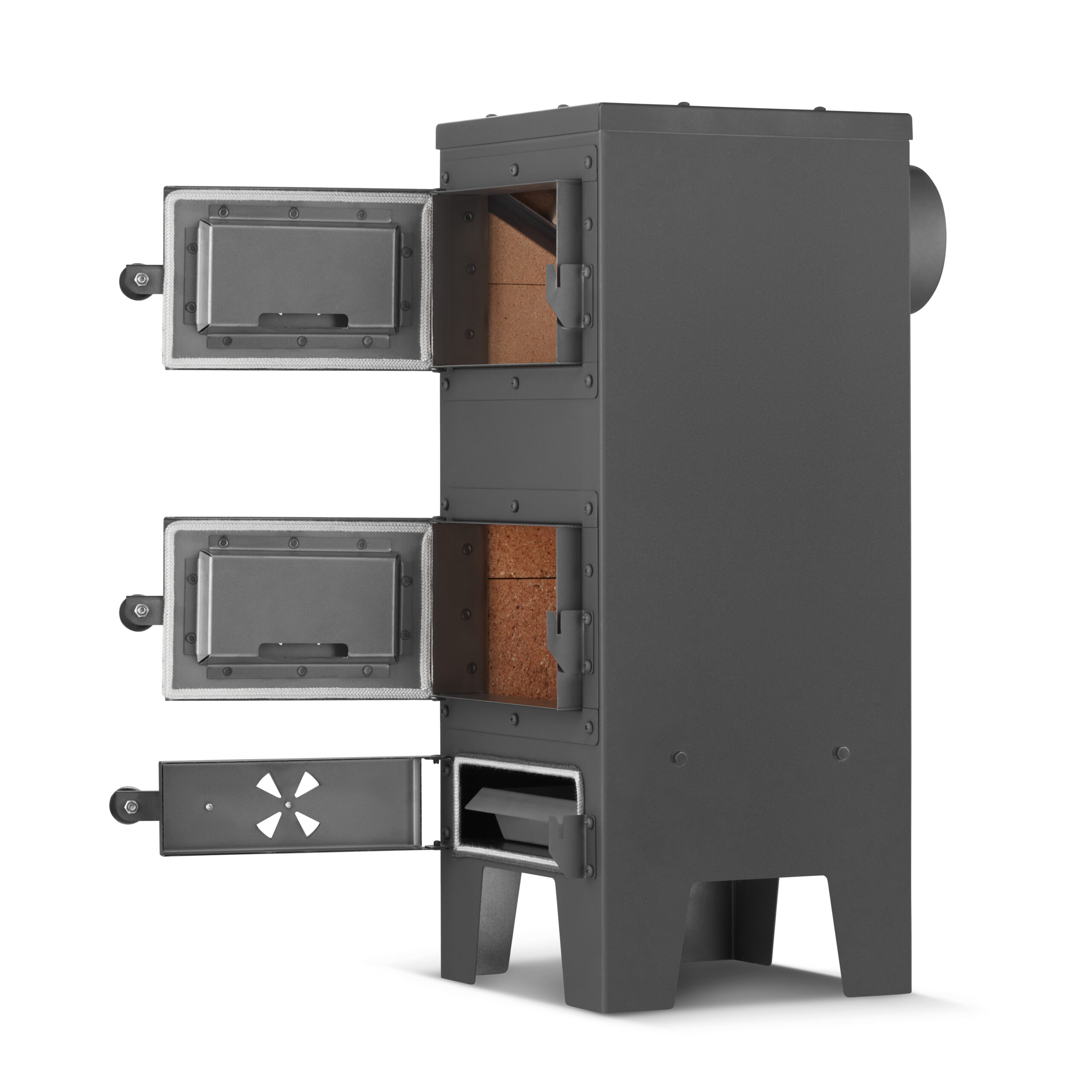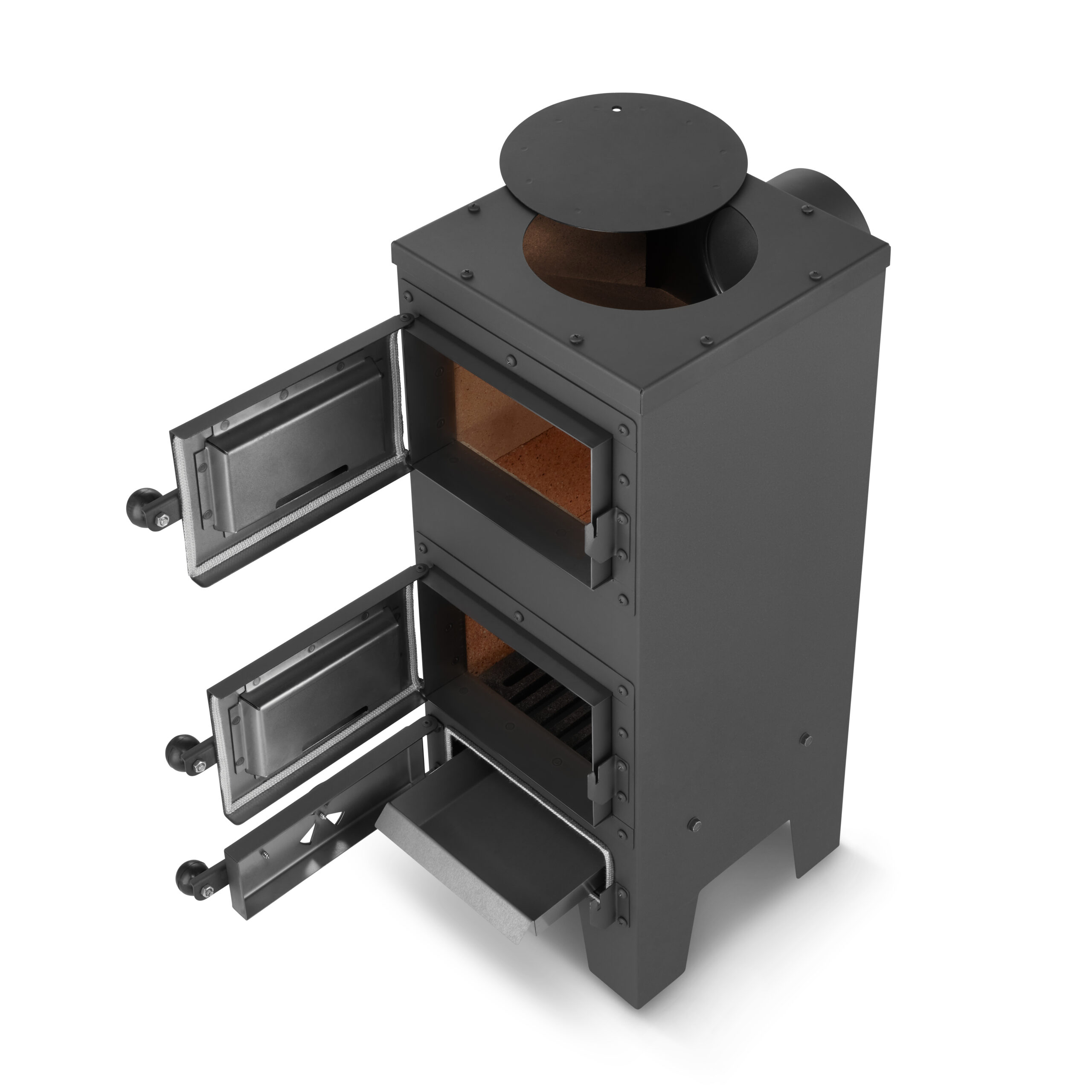 Podwójne ścianki stalowe w drzwiczkach chronią przed nadmiernym nagrzewaniem się obudowy, a mocne klamki zatrzaskowe zwiększają bezpieczeństwo użytkowania. Zadbano nawet o szczegóły, takie jak gałki. Wykonane są z bakelitu, czyli materiału odpornego na wysokie temperatury. Możesz więc wygodnie otwierać piecyk bez poparzeń.