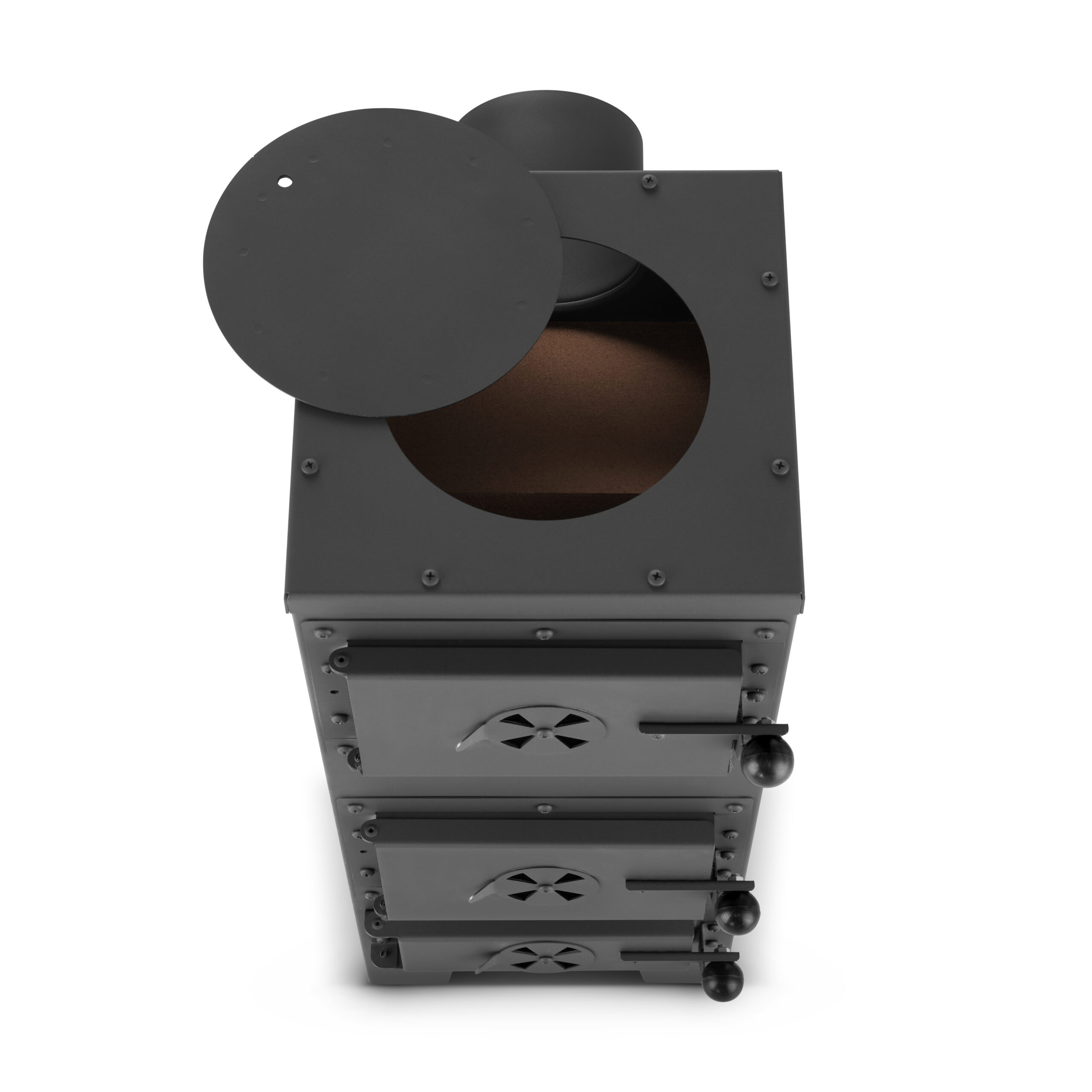 - Górna płyta grzewcza nagrzewa się równomiernie, co pozwala na podgrzewanie potraw czy gotowanie wody – świetna sprawa, jeśli piec stoi w warsztacie, domku letniskowym czy na działce.