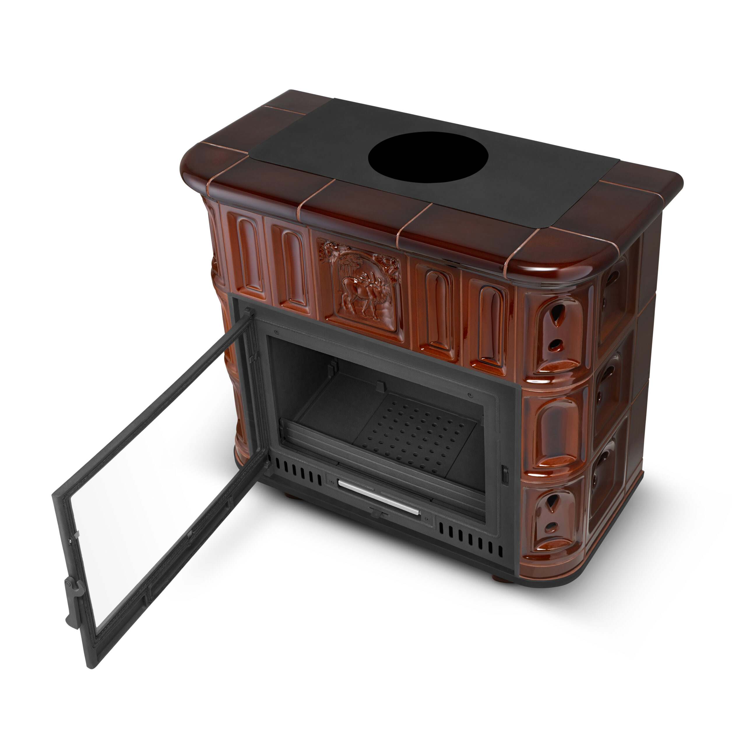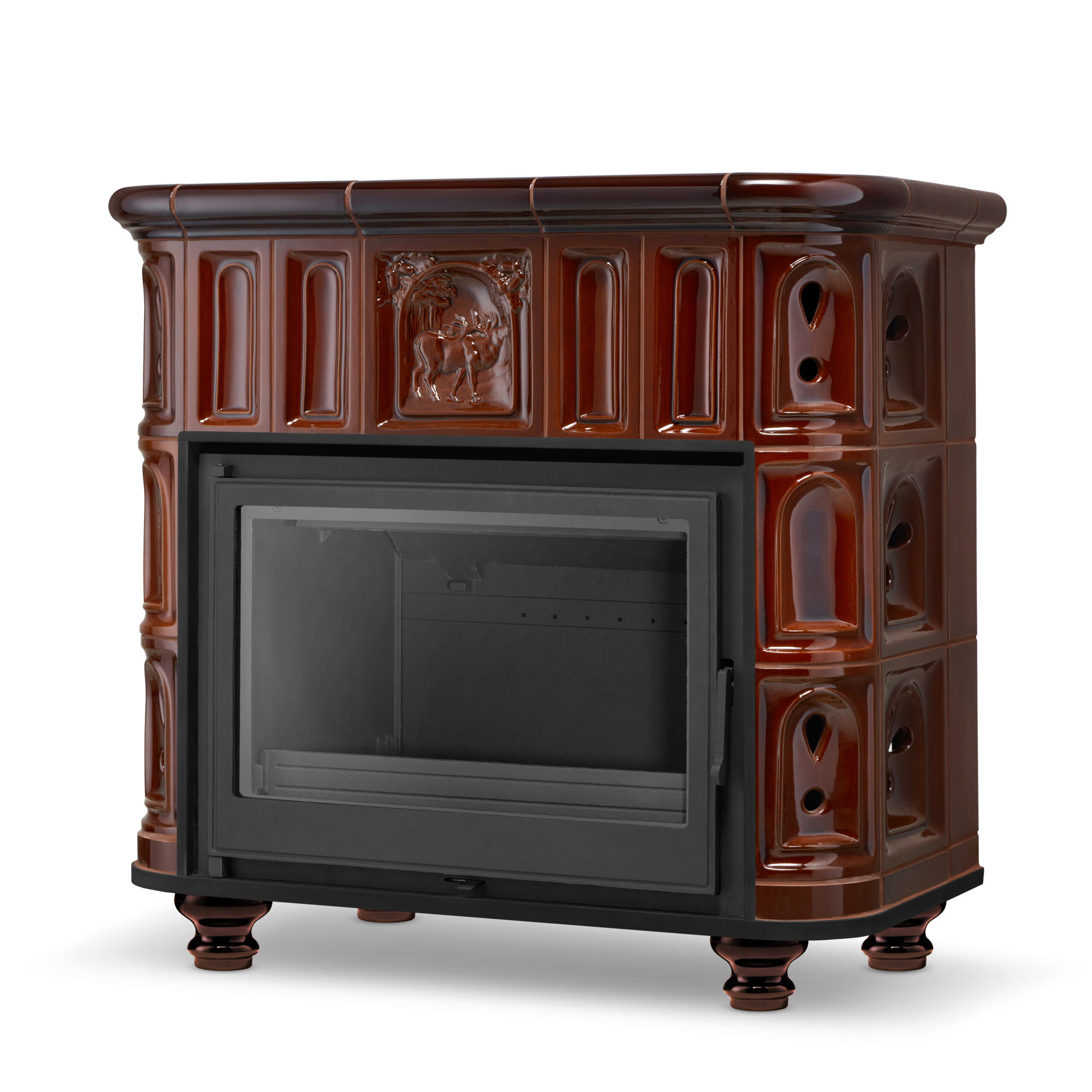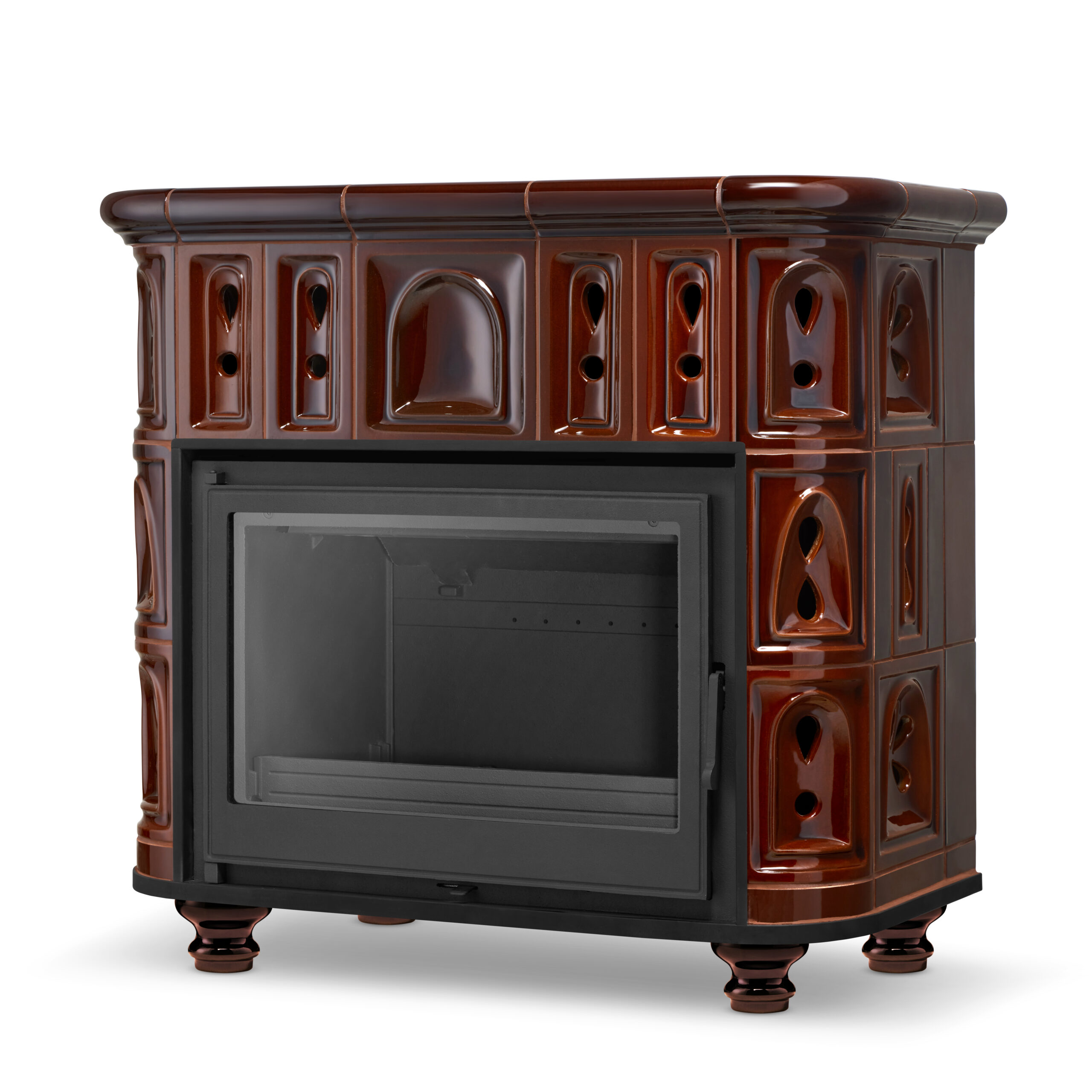 Model BERGEN / OSLO dostępny jest w klasycznym, głębokim brązie – kolorze, który doskonale odnajduje się zarówno w rustykalnych wnętrzach, jak i bardziej nowoczesnych aranżacjach z nutą retro. Ta barwa kafli świetnie współgra z czarnym żeliwem i wizją ognia za szybą.