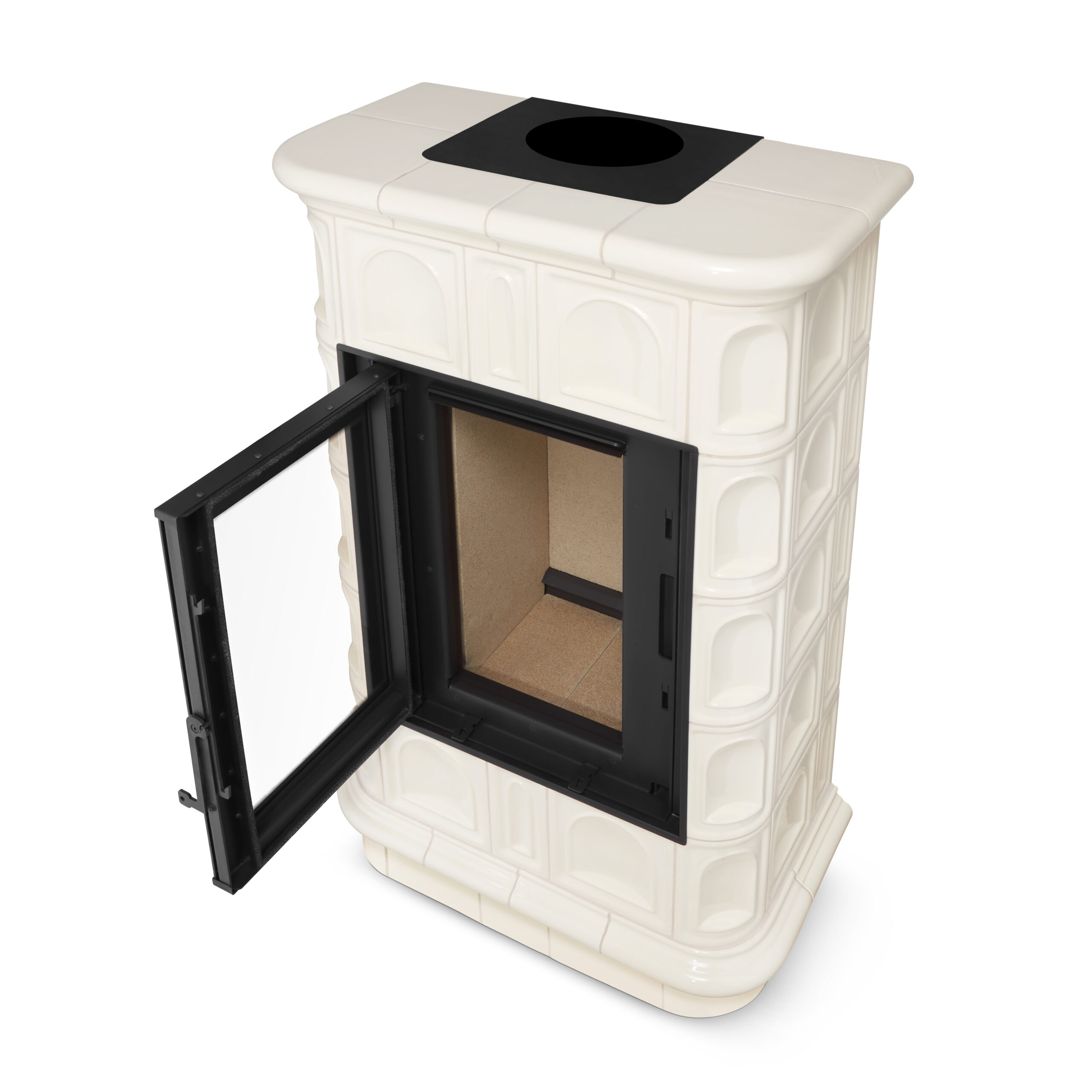 Kafle są dostępne w eleganckiej bieli lub beżu, ale możesz również skontaktować się z nami i zamówić je w dowolnym kolorze z palety RAL – dzięki temu idealnie dopasujesz piec do stylu swojego domu, niezależnie od tego, czy stawiasz na nowoczesność, rustykalne ciepło czy klasykę.