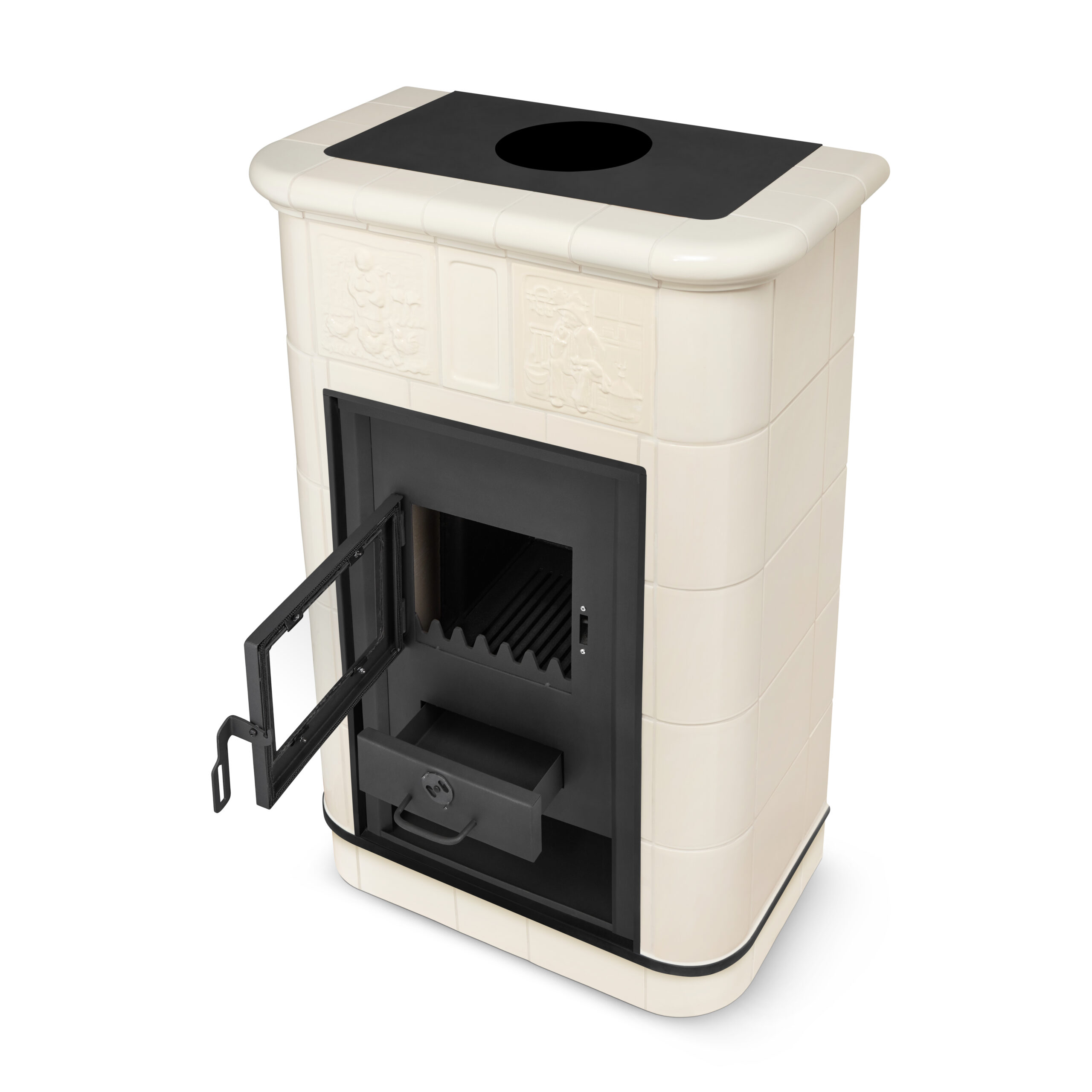 Kominek HAAG jest zaprojektowany tak, by codzienne użytkowanie było intuicyjne i wygodne. Wyjmowany popielnik ułatwia czyszczenie, a wnętrze paleniska wyłożone szamotem zapewnia długą żywotność i skuteczną izolację. Żeliwny ruszt można łatwo wyjąć do czyszczenia lub wymiany. Wszystko działa dokładnie tak, jak powinno – bez niespodzianek.