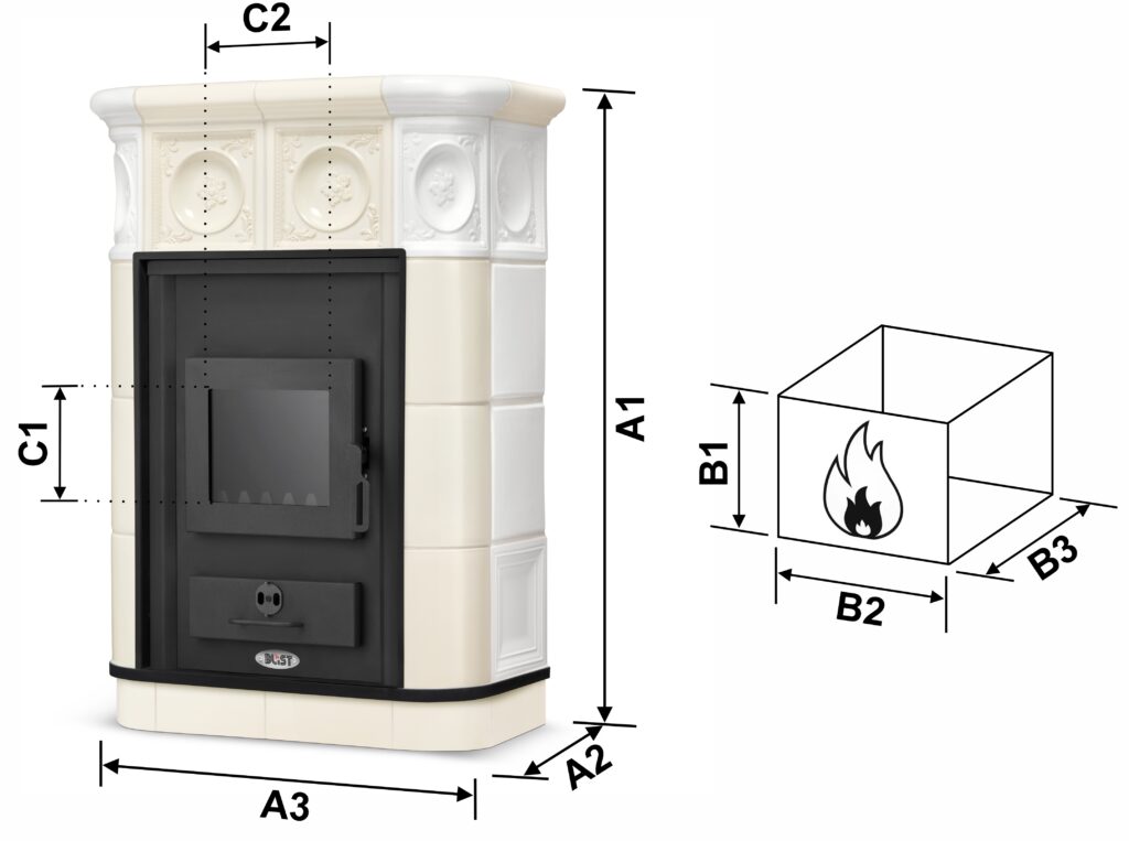 • materiał wykonania: stal kotłowa + kafle ceramiczne