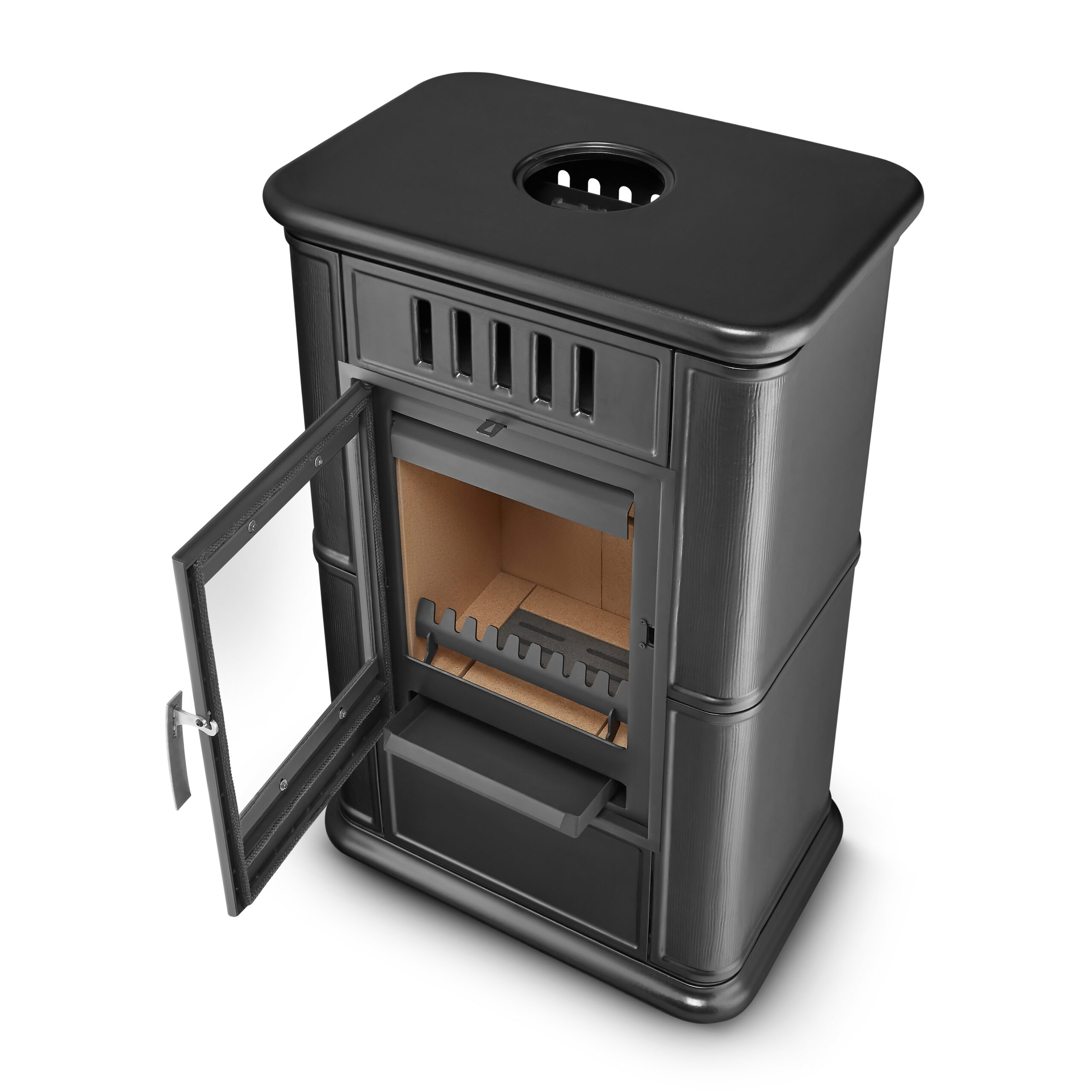 • jest stabilny – nie przemieszcza się pod wpływem wysokiej temperatury czy ciężaru drewna.