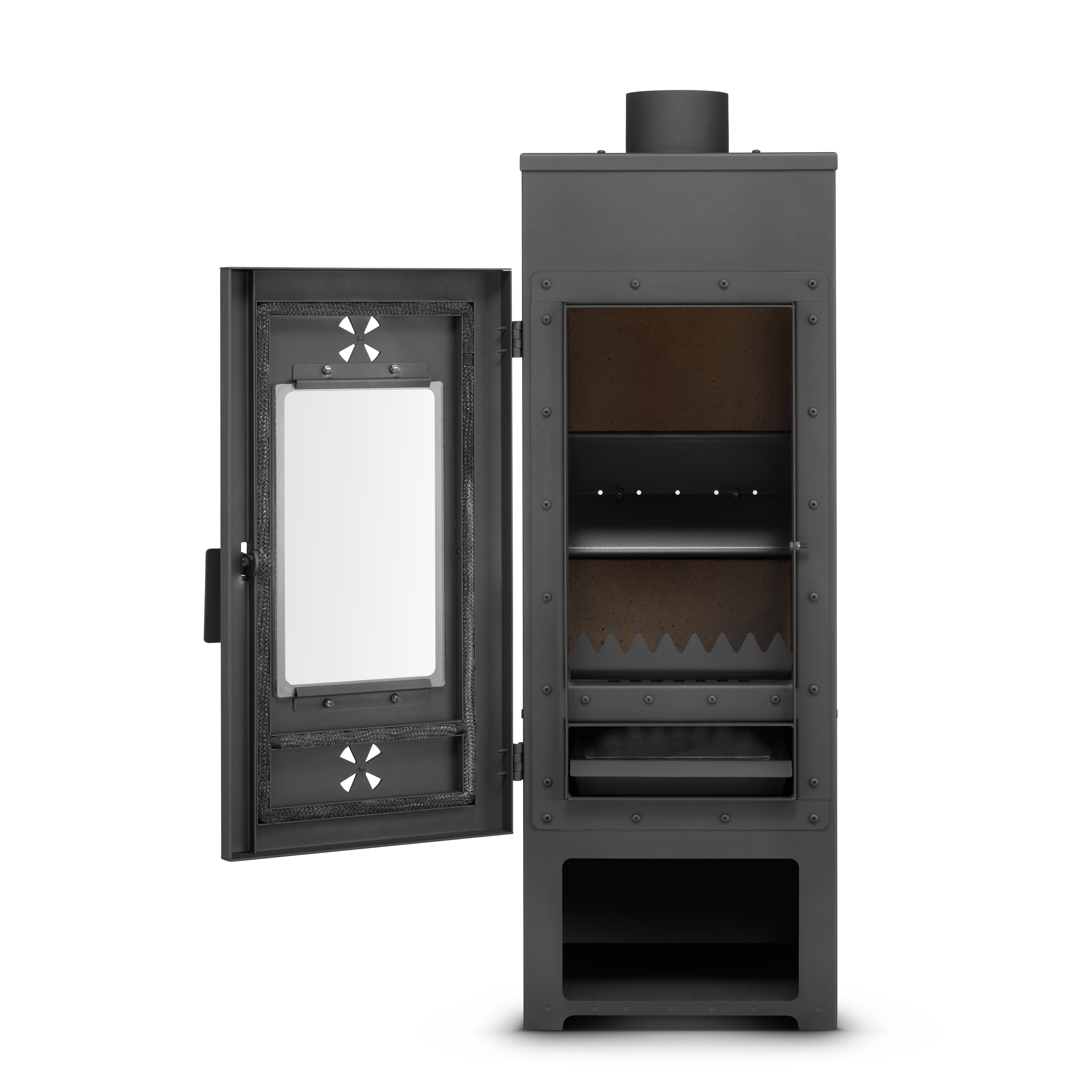 - Wyjmowany popielnik ułatwia czyszczenie – popiół można usunąć szybko i wygodnie.