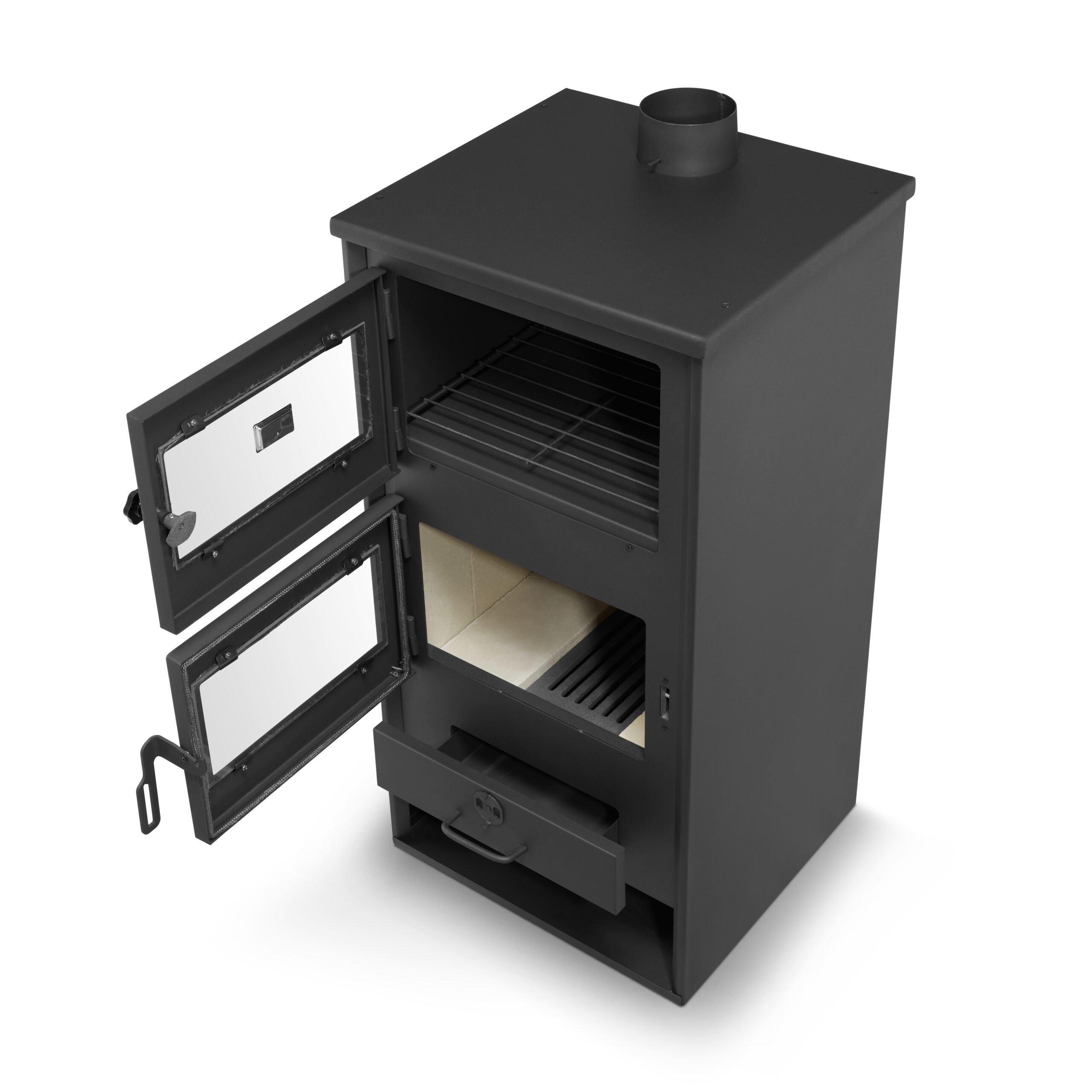 Kominek wolnostojący typu koza z piekarnikiem NAPOLI to doskonałe urządzenie grzewcze, które może być stałym źródłem ciepła w domu lub mieszkaniu. Piec wyposażony jest we wbudowany piekarnik, który doskonale nadaje się do podgrzewania potraw lub pieczenia. Piekarnik umieszczony jest tuż nad paleniskiem, co sprawia, że szybko nagrzewa się i dobrze trzyma temperaturę. Piec NAPOLI to jeden z najlepszych pieców stalowych z wbudowanym piekarnikiem dostępnych obecnie na rynku pod względem jakość / cena. Warto podkreślić, że piec spełnia surowe wymogi normy ECO Design 2022 (Ekoprojekt 2022), a także normy CE.