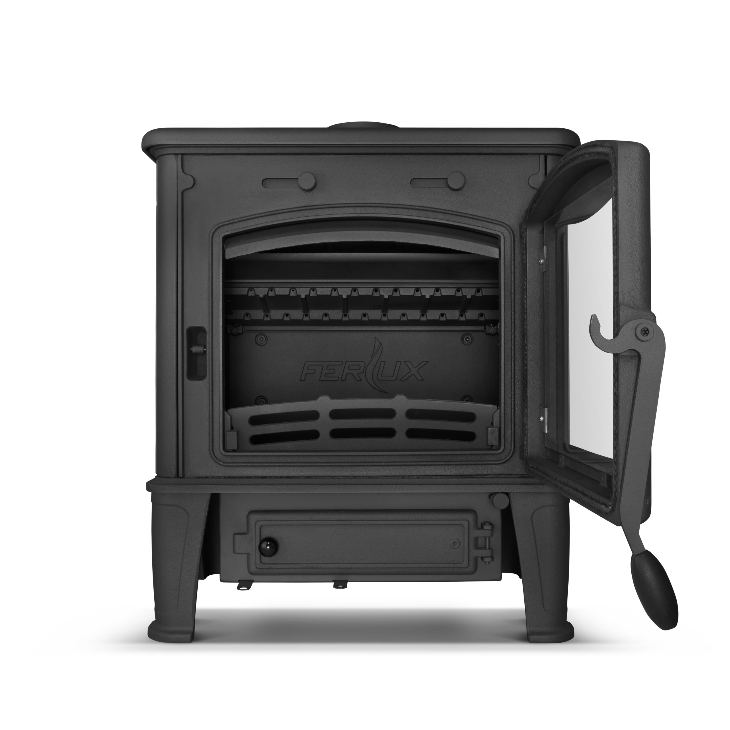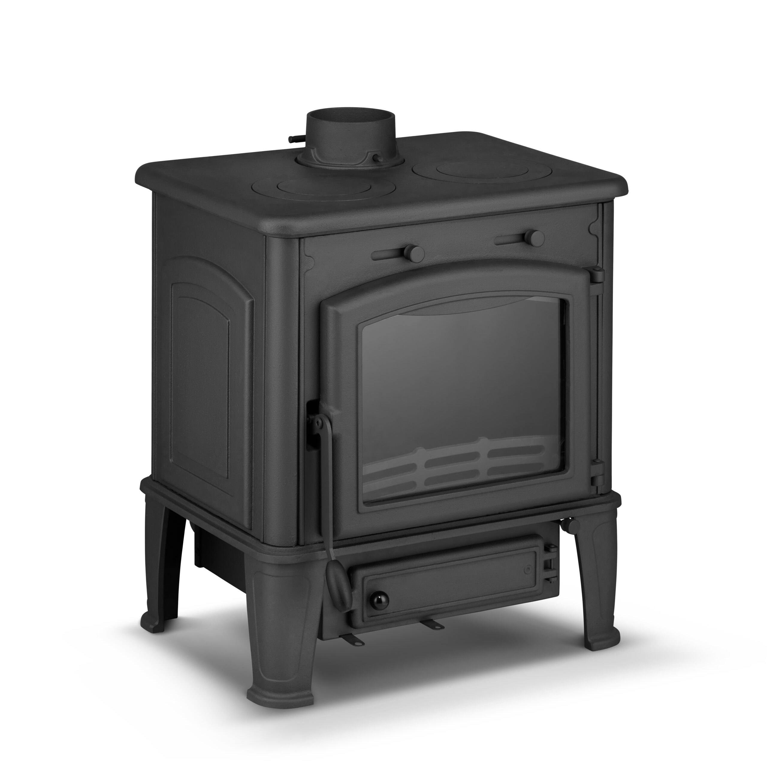 - Ściany paleniska w całości z żeliwa – zero kompromisów, maksymalna trwałość.