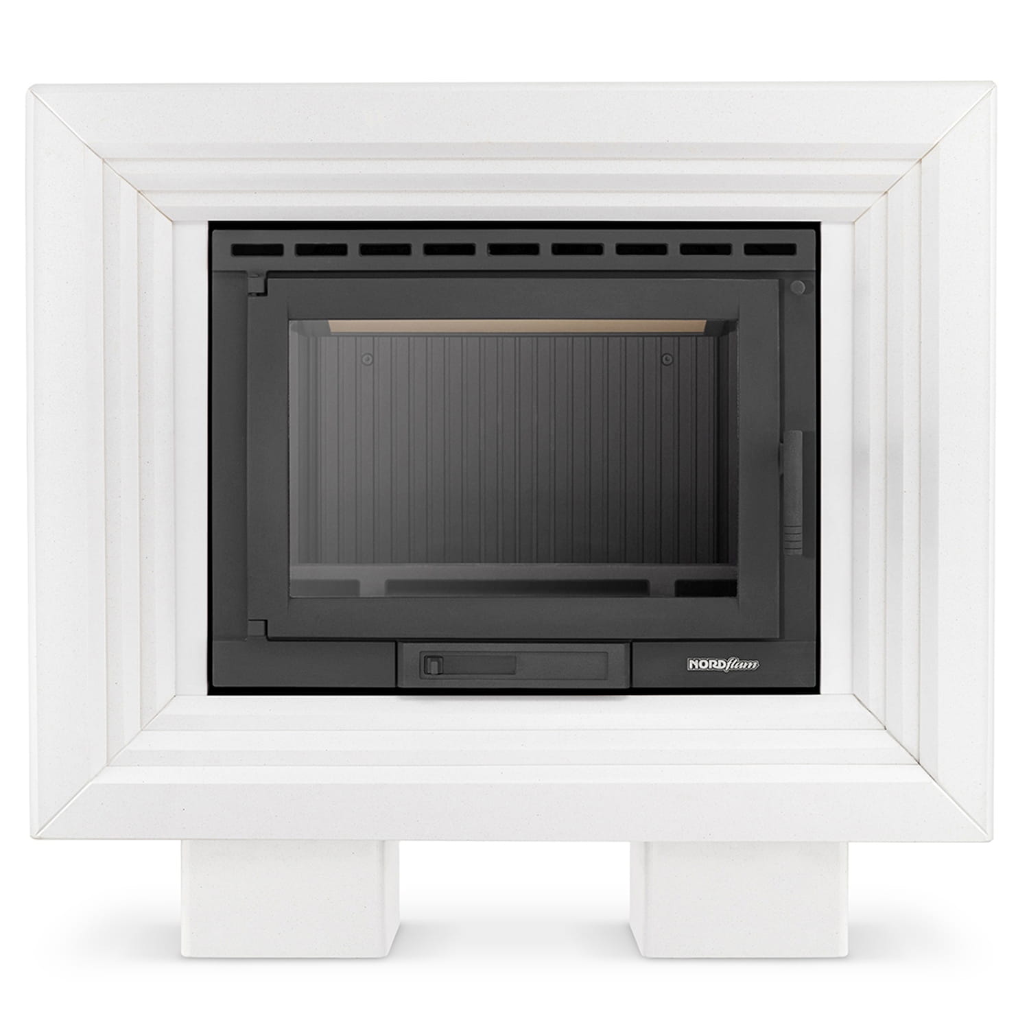 W centrum pieca znajduje się solidny, żeliwny wkład kominkowy z dużą, żaroodporną szybą. Dzięki niej ogień staje się częścią wnętrza – rozświetla, ociepla i tworzy wyjątkowy nastrój. System czystej szyby sprawia, że ta brudzi się wolniej, a Ty masz nieprzerwany widok na taniec płomieni. To doskonała opcja dla miłośników tradycyjnego palenia drewnem i tych, którzy chcą połączyć funkcję grzewczą z estetycznym doznaniem.