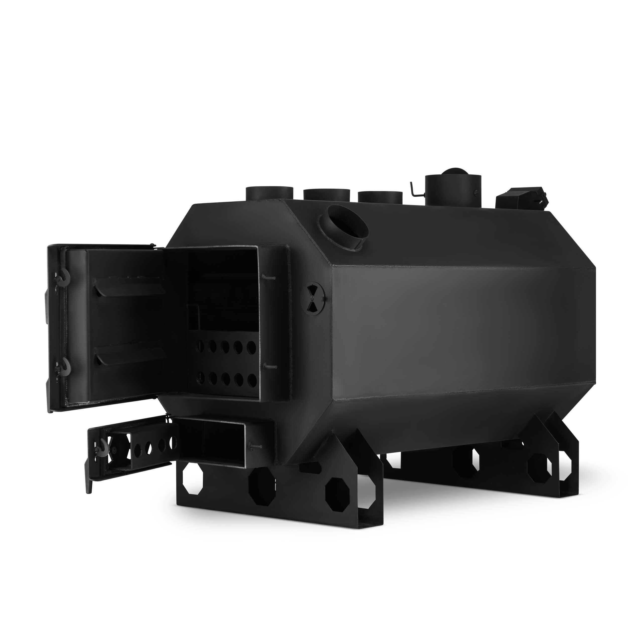 OCTAGON HEATING SYSTEM to specjalnie opracowana i dobrana konstrukcja pieca oparta na nietypowym kształcie. To właśnie kształt OKTAGONU w sposób optymalny pozwala na zastosowanie bardzo dużych drzwi załadunkowych oraz olbrzymiej poziomej komory spalania (dzięki potężnej komorze spalania piec pomieści kawałki drewna o długości nawet 120 cm!) otoczonej specjalnym płaszczem powietrznym. Piec nadmuchowy OKTAGON PN3 to wysokowydajny system grzewczy, który doskonale sprawdzi się w różnorodnych obiektach, takich jak hale przemysłowe, warsztaty, magazyny, garaże czy szklarnie.